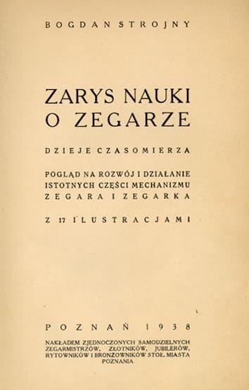 Bogdan Strojny pisze swoją pierwszą książkę „Zarys nauki o zegarze”. Jest to bardzo śmiała inicjatywa seniora naszej rodziny, w tamtym czasie literatura zegarmistrzowska w języku polskim prawie nie istniała.
