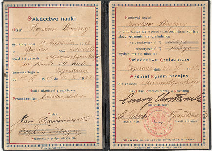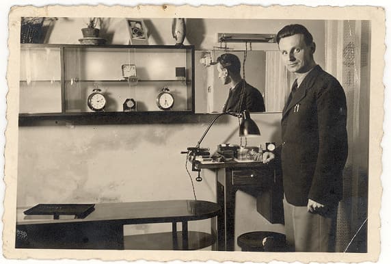 Bogdan Strojny, jako 17 letni chłopak rozpoczyna naukę zawodu zegarmistrzowskiego.