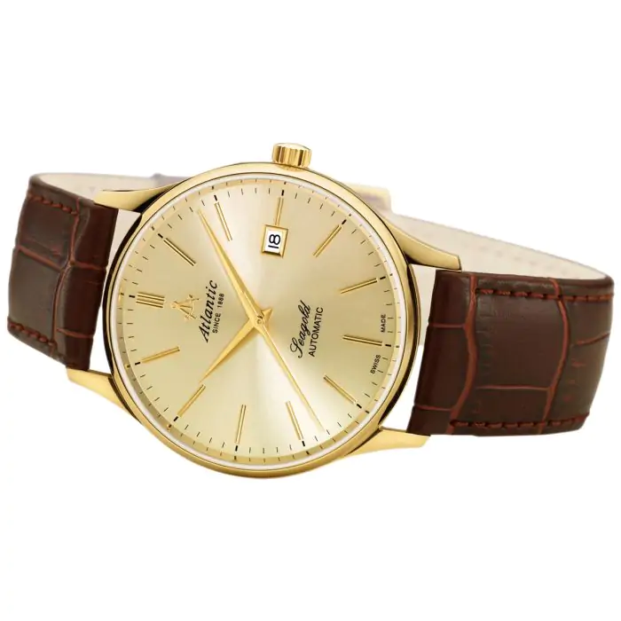 Atlantic Seagold w rozmiarze 40 mm został wykonany ze złota 14-karatowego. Wewnątrz koperty pracuje mechanizm szwajcarski z automatycznym naciągiem ETA 2824-2. Czasomierz wyposażono w kalendarz na godzinie trzeciej oraz centralny sekundnik. Całości dopełnia skórzany pasek oraz ponadczasowa, klasyczna tarcza w kolorze żółtym. Model ten jest wyjątkowy ze względu na walory użytkowe jakie oferuje koperta wykonana ze złota 14K oraz mechanizm. Zegarek objęty jest dwuletnią, międzynarodową gwarancją producenta.