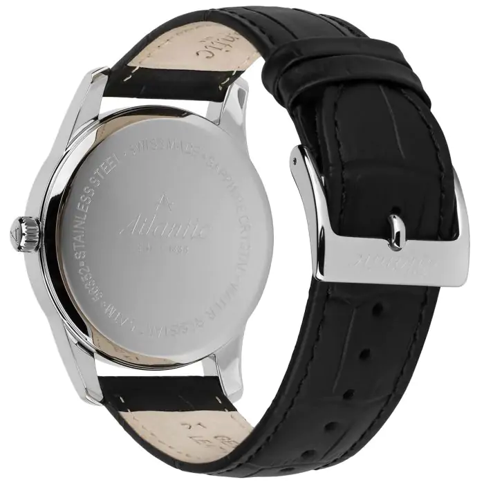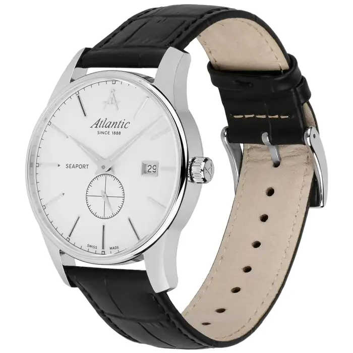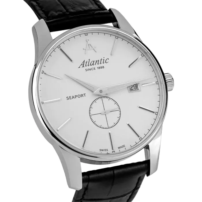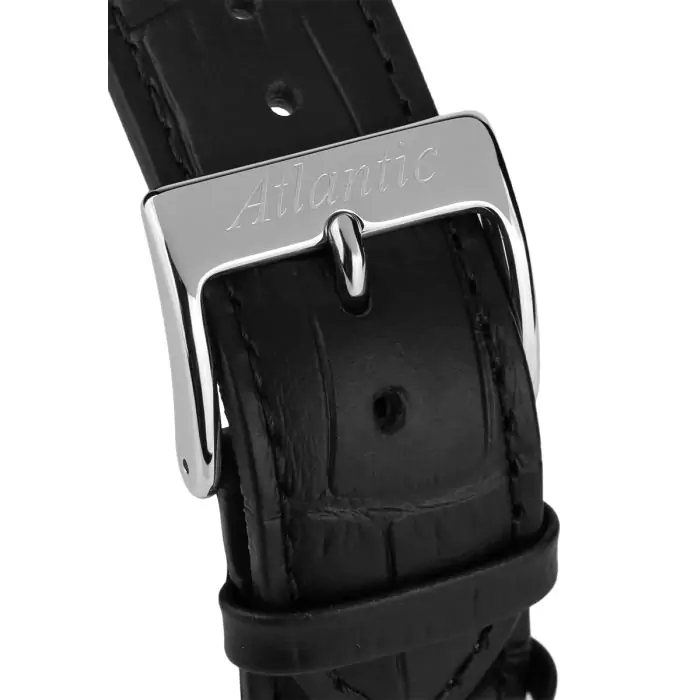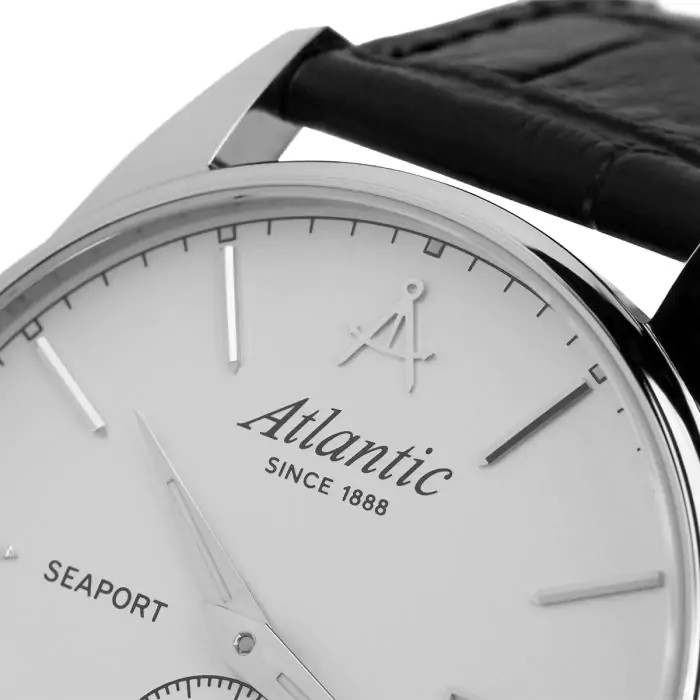 ATLANTIC Seaport w rozmiarze 41 mm z mechanizmem kwarcowym to propozycja dla osób ceniących sobie pełnie elegancji w klasycznym wydaniu nawiązujące swoim wzornictwem do czasomierzy z lat minionych. Wyposażono go w szafirowe szkło, wodoszczelność 50 m oraz elegancki skórzany pasek. Szyku dodaje mu mały sekundnik znajdujący się na godzinie szóstej. Zegarek objęty jest dwuletnią, międzynarodową gwarancją producenta.