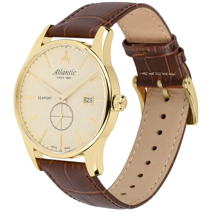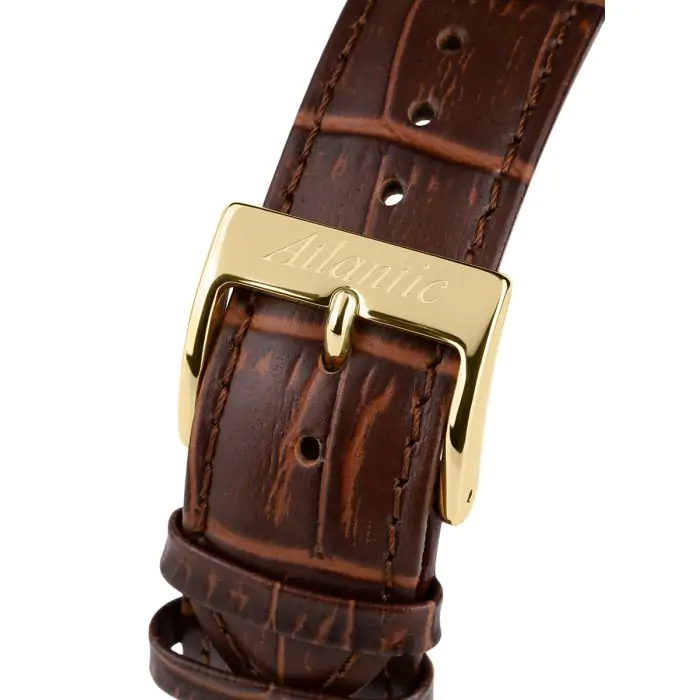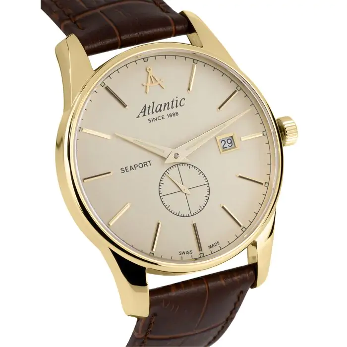 ATLANTIC Seaport w rozmiarze 41 mm z mechanizmem kwarcowym to propozycja dla osób ceniących sobie pełnie elegancji w klasycznym wydaniu nawiązujące swoim wzornictwem do czasomierzy z lat minionych. Wyposażono go w szafirowe szkło, wodoszczelność 50 m oraz elegancki skórzany pasek. Szyku dodaje mu mały sekundnik znajdujący się na godzinie szóstej. Zegarek objęty jest dwuletnią, międzynarodową gwarancją producenta.