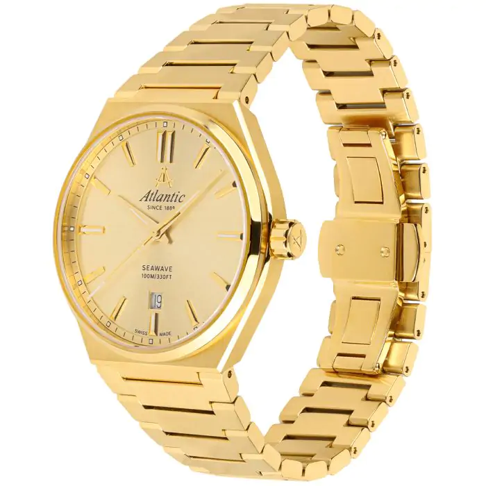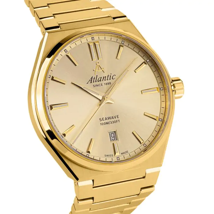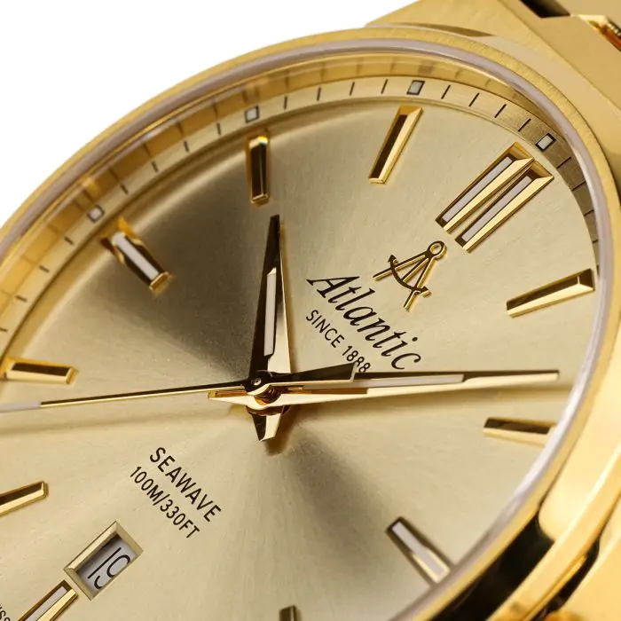 ATLANTIC z linii SEAWAVE w rozmiarze 41 mm z mechanizmem kwarcowym to propozycja dla osób ceniących sobie czasomierze w klasycznym wydaniu. Wyposażono go w szafirowe szkło, wodoszczelność 100 m oraz elegancką bransoletę. Szyku dodaje mu centralny sekundnik oraz kalendarz umieszczony na godzinie szóstej. Zegarek objęty jest dwuletnią, międzynarodową gwarancją producenta.