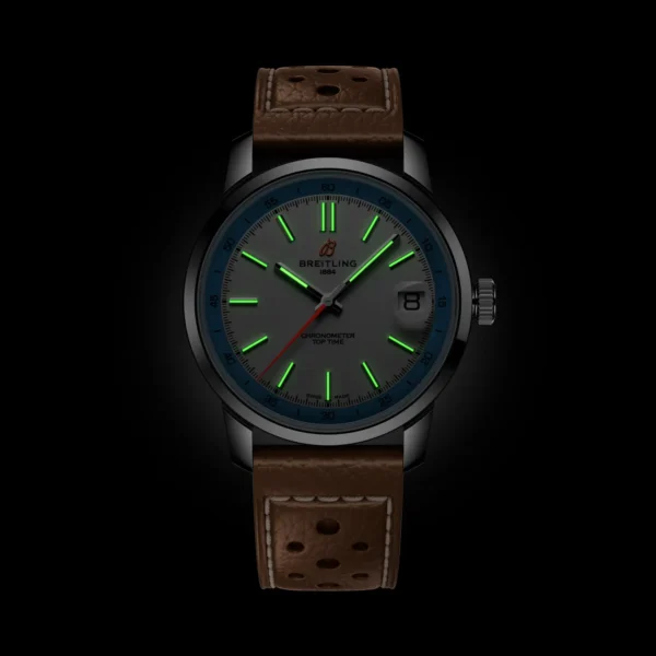 Mamy niezwykłą przyjemność zaprezentować nowy model czasomierza Breitling, model Top Time w rozmiarze 38 mm, będący nowością na rok 2025 r. Tarcza zegarka nawiązuje do deski rozdzielczej w samochodzie, natomiast pasek pokryty jest otworami będąc nawiązaniem  do rękawic samochodowych. Bez wątpienia model ten kojarzy się i już zawsze będzie kojarzyć się z motoryzacją. Wewnątrz koperty znajduje się manufakturowy mechanizm, kaliber B31 z imponującą rezerwą chodu wynoszącą 78 godzin, przy maksymalnie nakręconej sprężynie. Dodatkowo mechanizm posiada Certyfikat Chronometru wydany przez COSC. Możemy go zakupić  w trzech wariantach kolorystycznych na paskach  oraz na stalowych bransoletach. Breitling, model Top Time 38 mm objęty jest pięcioletnią, międzynarodową gwarancją producenta.