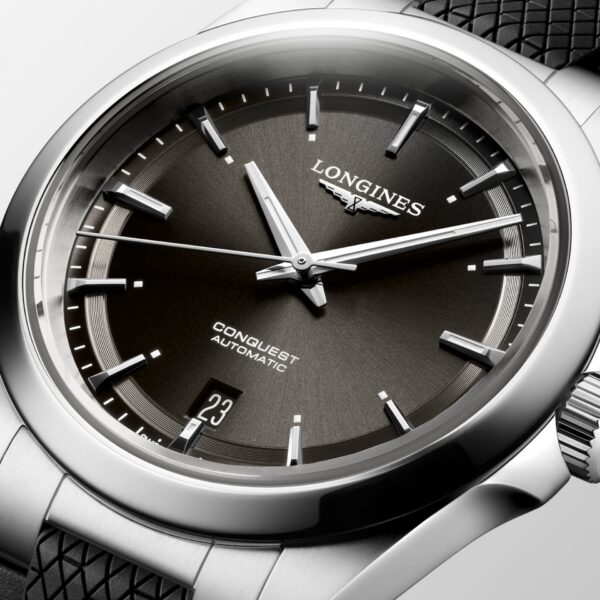 Conquest, bezkonkurencyjny zegarek do noszenia na co dzień, w 1954 roku jako pierwsza kolekcja Longines zyskał ochronę szwajcarskiego Federalnego Biura Własności Intelektualnej. Od tego czasu styl i technologie w ramach kolekcji ewoluowały, ale pozostały wierne jej pierwotnej tożsamości, stanowiąc harmonijne połączenie śmiałego charakteru, nowoczesnego wzornictwa i sportowej elegancji. Każdy zegarek Conquest świadczy o niesłabnącym dążeniu marki Longines do wysokich osiągów i zegarmistrzowskiej doskonałości. Za sprawą swoich wszechstronnych modeli linia Conquest stanowi świadectwo zaangażowania marki Longines w tworzenie zegarków dopasowanych do wszystkich sfer życia. Kolekcja obejmuje wiele różnych rozmiarów, materiałów i kolorów. Czasomierz objęty jest pięcioletnią, międzynarodową gwarancją producenta.