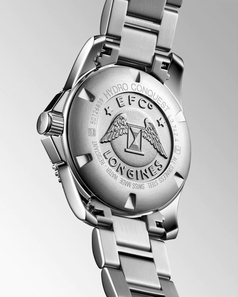 Linię HydroConquest marka dedykuje kobietom i mężczyznom poszukującym wysokiej jakości w zegarkach łączących techniczną innowacyjność i elegancję. Jest to czasomierz dla osób aktywnych, żyjących na krawędzi, lubiących sporty wodne. W kolekcji znajdziemy modele kwarcowe jak i mechaniczne. Każdy czasomierz tej wyjątkowej linii posiada wodoszczelność do 30 barów, bezpieczne zapięcie bransoletowe. Pierścień zegarka jest obrotowy, na szkle od wewnętrznej strony znajduje się powłoka antyrefleksyjna poprawiająca znacznie czytelność zegarka. Linia HydroConquest objęta jest pięcioletnią, międzynarodową gwarancją producenta.