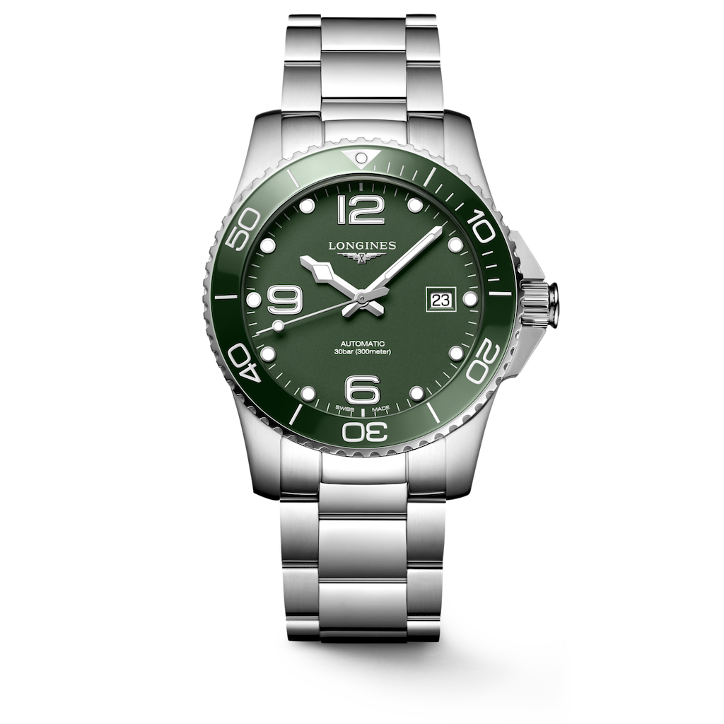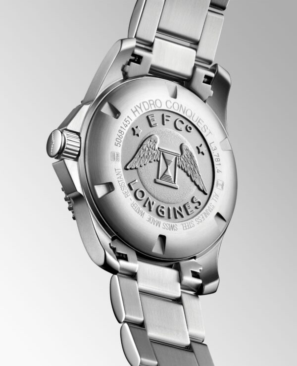 Kolekcja HydroConquest, zainspirowana światem sportów wodnych, wyróżnia się śmiałym designem. Model, wodoodporny do 30 barów (300 m) i wyposażony w jednokierunkowy bezel obrotowy oraz przykręcaną koronkę i dekiel, odznacza się wyjątkową niezawodnością w każdych okolicznościach. Czasomierz objęty jest pięcioletnią, międzynarodową gwarancją producenta.