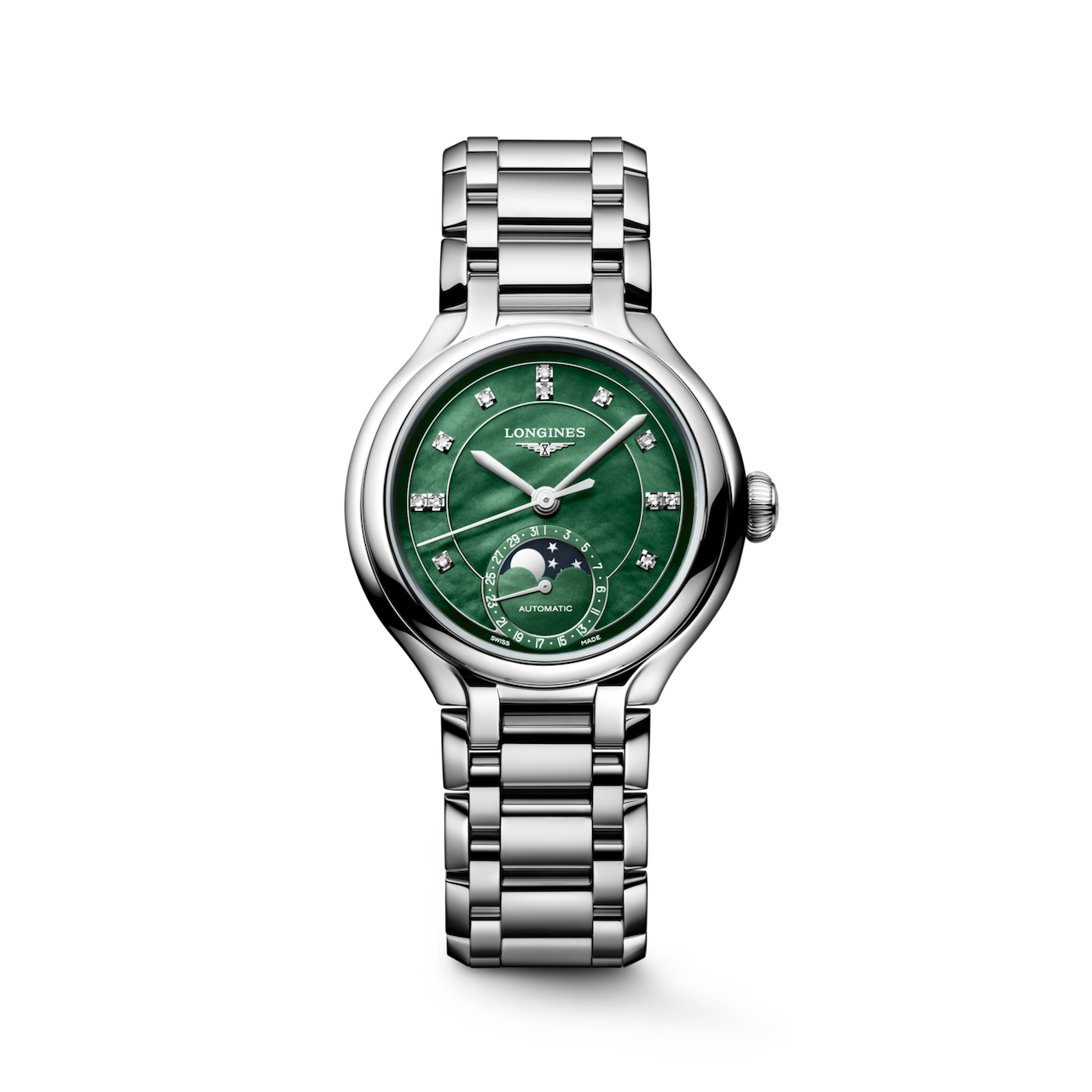 Kolekcja Longines PrimaLuna to ucieleśnienie elegancji i kobiecości. Wykonano go z niezwykłą dbałością o szczegóły, a o jego związkach z niebem przypominają pełne wdzięku krzywizny i delikatne linie. Każdy zegarek Longines PrimaLuna, zarówno w wersji wysadzanej diamencikami, jak i z minimalistyczną tarczą, promienieje pięknem, które wykracza poza ulotne trendy. Czasomierz objęty jest pięcioletnią, międzynarodową gwarancją producenta.