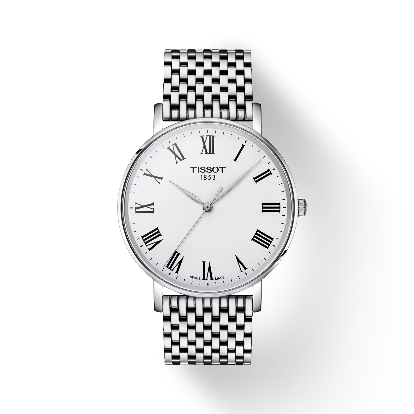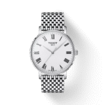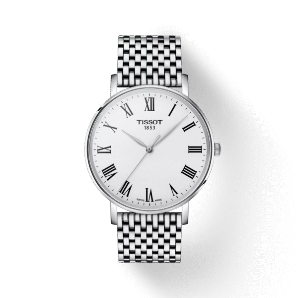 Nazwa Tissot Everytime mówi wszystko: ten zegarek jest odpowiedni na każdą okazję. Tissot Everytime pasuje do każdego stylu życia i każdego stroju dzięki minimalistycznemu, przejrzystemu i ponadczasowemu designowi. Wszystkie wersje tego precyzyjnego szwajcarskiego zegarka kwarcowego mają kopertę ze stali szlachetnej 316L, a także wysokiej jakości, odporne na zarysowania szafirowe szkło i są wyposażone we wskaźnik wyczerpania baterii. Ten 40-milimetrowy model Tissot Everytime posiada białą tarczę z cyframi rzymskimi oraz bransoletę ze stali szlachetnej 316L z systemem szybkiej wymiany i motylkowym składanym zapięciem z przyciskami. Czasomierz objęty jest dwuletnią, międzynarodową gwarancją producenta.