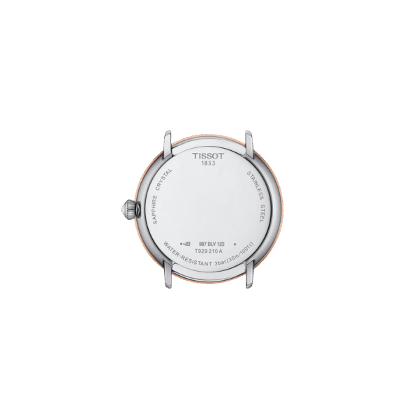Kopertę zegarka wykonano ze stali nierdzewnej 316L, natomiast bezel to 18-karatowe polerowane różowe złoto. Dopełnieniem obrazu jest korona zegarka zdobiona kaboszonem w kształcie piramidy. Średnica to 33 mm, w których ukryty jest niezawodny szwajcarski mechanizm odpowiadający za działanie zegarka. Taka kombinacja cech sprawi, że Tissot Glendora będzie doskonałym kompanem zarówno na co dzień, jak i do eleganckiego stroju wieczorowego. Model dostępny jest w kilku różnych wariantach kolorystycznych. Czasomierz objęty jest dwuletnią, międzynarodową gwarancją producenta.