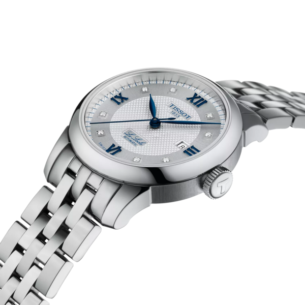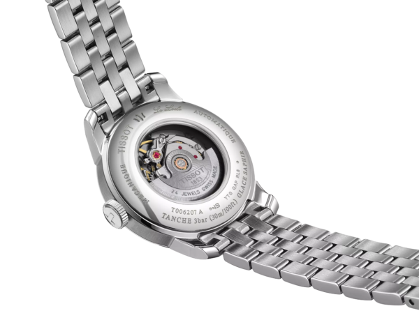 Zegarek Tissot Le Locle Automatic uosabia tradycję rzemiosła Tissot. Nazwany na cześć rodzinnego miasta marki w górach szwajcarskiej Jury, zegarek ten jest idealny dla osób poszukujących ponadczasowej elegancji i szwajcarskiej tradycji zegarmistrzowskiej. Tissot Le Locle Powermatic 80 20th Anniversary to jubileuszowy model świętujący 20-lecie kolekcji Le Locle, która została wprowadzona na rynek w 2003 roku z okazji 150. urodzin marki. Wewnątrz znajduje się mechanizm Powermatic 80 z odporną na pole magnetyczne sprężyną włosową Nivachron oraz rezerwą chodu do 80 godzin. Jego niestrudzoną pracę można obserwować przez szklany dekiel koperty. Na srebrnej tarczy, chronionej przez odporne na zarysowania szafirowe szkło, znajdują się niebieskie cyfry rzymskie na godzinach 12, 3, 6 i 9 oraz datownik w formie indeksów. Dodatkowym, precyzyjnie wykonanym detalem jest giloszowanie Clous de Paris na środku tarczy i wokół jej zewnętrznej krawędzi. Zegarek Tissot Le Locle Powermatic 80 20th Anniversary dostarczany jest ze stalową bransoletą oraz paskiem, które mogą być łatwo wymieniane bez użycia narzędzi dzięki systemowi szybkiej wymiany. Czasomierz objęty jest dwuletnią międzynarodową gwarancją producenta.