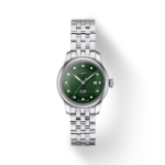 Kolekcja Le Locle zadebiutowała w 2003 roku, aby upamiętnić 150-lecie marki Tissot. Ten zegarek to część historii, ucieleśniający ducha innowacji, który definiuje Tissot. Model ten posiada zieloną tarczę i jest wyposażony w system wymiany paska. Wszystkie zegarki z rodziny Le Locle mają piękną tarczę clous de Paris „guilloche” w formie małych piramid. To szczegół, który naprawdę robi różnicę. Gra polerowanych i szczotkowanych wykończeń na ogniwach tworzy urzekający rytm wizualny, łapiąc światło przy każdym ruchu. Ten zegarek uosabia urok szwajcarskiego dziedzictwa, a nazwa „Le Locle”, napisana kursywą na tarczy, dodaje wyrafinowanego akcentu. W najnowszym modelu zastosowano najnowocześniejszą technologię Nivachron Spring Balance, która znacząco łagodzi wpływ pól magnetycznych, a jednocześnie jest odporna na wstrząsy, starzenie i zmiany temperatury. Model ten posiada funkcję datownika oraz przezroczysty dekiel koperty, który ujawnia hipnotyzującą mechanikę podczas pracy. Czasomierz objęty jest dwuletnią, międzynarodową gwarancją producenta.