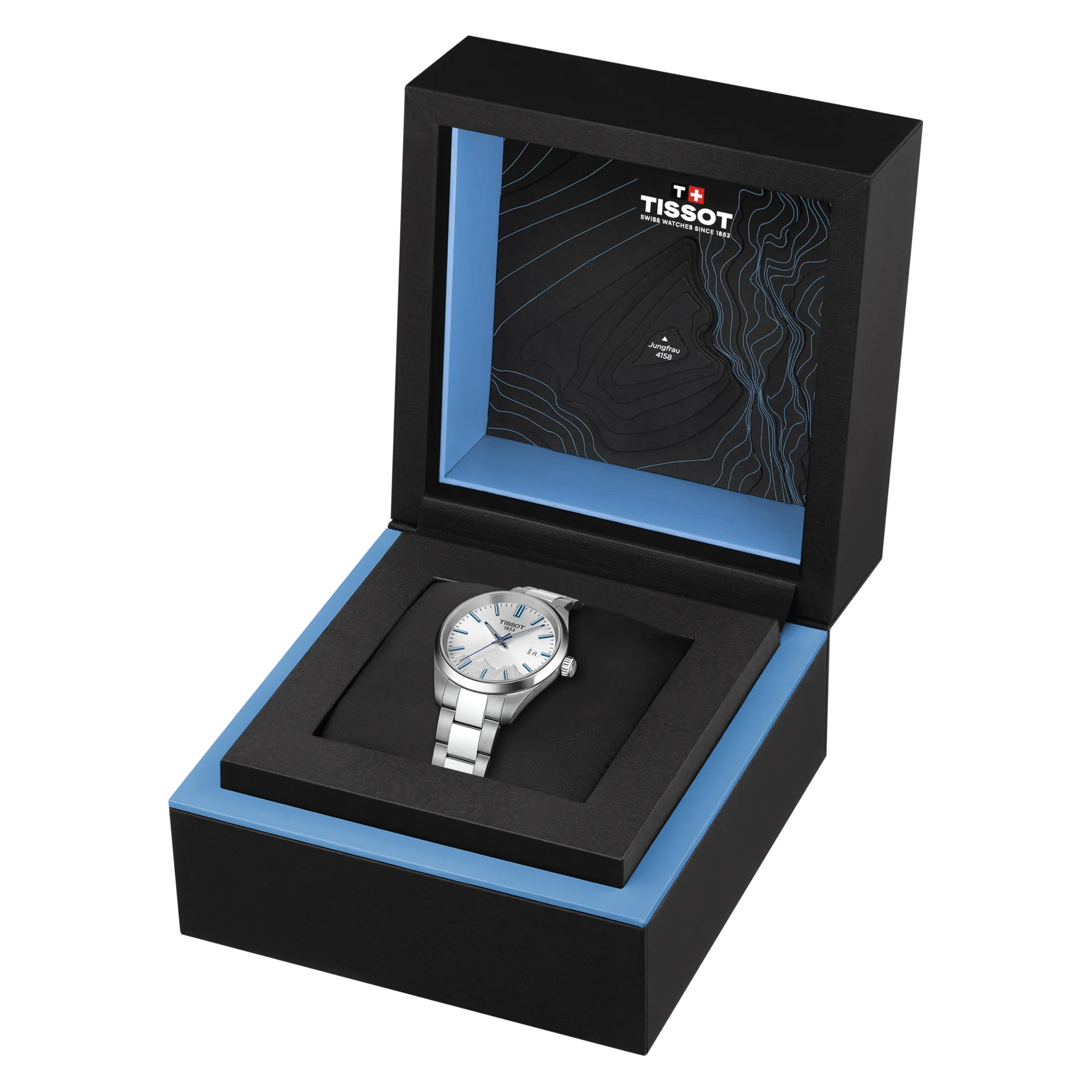 Tissot i Jungfrau, wieloletni partnerzy, łączą siły, by podkreślić piękno szwajcarskiego dziedzictwa. Efektem tej współpracy są wyjątkowe zegarki inspirowane majestatycznym pięknem Alp i mistrzowskim kunsztem szwajcarskich zegarmistrzów. Kolekcja Tissot PR 100 Jungfrau oddaje wyjątkowy rytm towarzyszący wyprawom na najwyższe szczyty. Zegarki napędzane są precyzyjnym mechanizmem kwarcowym i dostępne w dwóch rozmiarach – 34 mm i 40 mm – tak, by każdy mógł znaleźć idealny model dla siebie. Tarcza zdobiona jest subtelnym grawerunkiem przedstawiającym góry Jungfrau, a na deklu widnieje napis „Jungfrau – Top of Europe”, podkreślający związek kolekcji z tym niezwykłym miejscem.