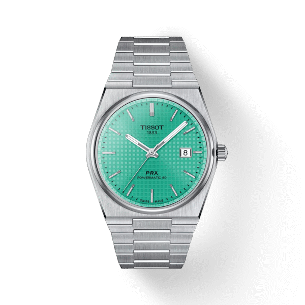 Zegarek PRX Powermatic 80 to nowoczesny, a zarazem osadzony w stylistyce pop-art’u model, który zachwyca nie tylko swoim mechanizmem ale również designem. Zegarek subtelnie łączy w sobie elementy z lat 70. Ten model został wyposażony w szwajcarski automatyczny mechanizm Powermatic z 80-godzinną rezerwą chodu i sprężyną włosową Nivachron, która jest odporna na działania pola magnetycznego. Mechanizm ETA Powermatic został zamknięty w kopercie o średnicy 40 mm i grubości 10,9 mm, wykonanej ze szczotkowanej stali szlachetnej z przezroczystym deklem dzięki czemu możemy obserwować pracę mechanizmu zegarka. Indeksy oraz wskazówki są pokryte powłoką Super-LumiNovą. Luminescencyjne wskazówki modelu PRX Powermatic 80 są zamontowane bardzo blisko siebie, co pozwala stworzyć efekt uniesienia i optycznie zbliżyć tarczę do szkła. Czasomierz objęty jest dwuletnią, międzynarodową gwarancją producenta.