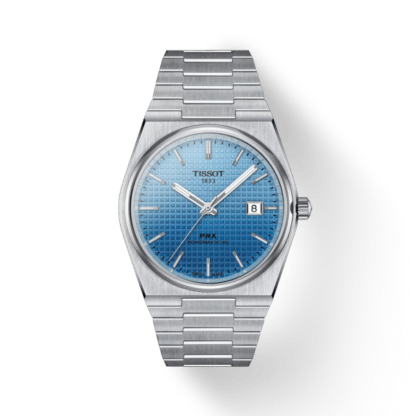 Nowy model Tissot PRX Powermatic 80 w rozmiarze 40 mm ma gradientową tarczę, która bawi się światłem i kolorem, nadając całości oszałamiający efekt. Pełen kolorów i odcieni zegarek przełamuje monotonię codziennego życia. Ten model Tissot PRX jest idealnym rozwiązaniem dla osób poszukujących zarówno funkcjonalności, jak i stylu. Zegarek łączy piękny design z wysoką jakością. Tarcza chroniona jest odpornym na zarysowania szafirowym szkłem, zapewniając przejrzystość i trwałość. Automatyczny mechanizm, którego pracę można obserwować przez przezroczysty dekiel, posiada rezerwę chodu do 80 godzin. Zwiększająca wydajność sprężyna balansu Nivachron łagodzi zakłócenia pola magnetycznego i jest odporna na wstrząsy oraz zmiany temperatury. Czasomierz objęty jest pięcioletnią, międzynarodową gwarancją producenta.
