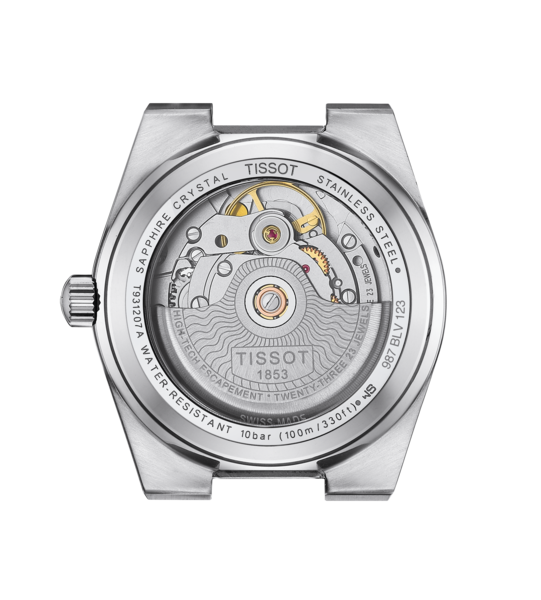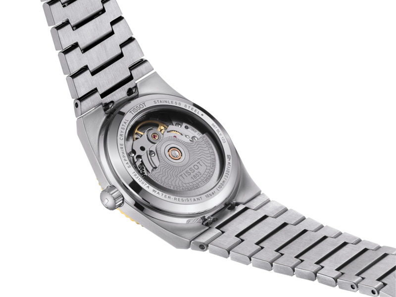 Mechanizm ETA Powermatic został zamknięty w kopercie o średnicy 35 mm i grubości 10,9 mm, wykonanej ze szczotkowanej stali szlachetnej z przezroczystym deklem dzięki czemu możemy obserwować pracę mechanizmu zegarka. Indeksy oraz wskazówki są pokryte powłoką Super-LumiNovą. Luminescencyjne wskazówki modelu PRX Powermatic 80 są zamontowane bardzo blisko siebie, co pozwala stworzyć efekt uniesienia i optycznie zbliżyć tarczę do szkła. Ta wersja Tissot PRX Powermatic 80 posiada bezel z 18-karatowego złota, która nadaje temu zegarmistrzowskiemu arcydziełu charakter i elegancję. Czasomierz objęty jest dwuletnią, międzynarodową gwarancją producenta.
