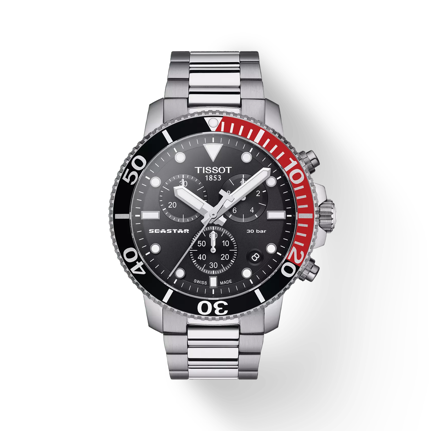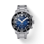 Ten zegarek to ciekawa propozycja dla miłośników sportów wodnych. Ma bardzo wysoką wodoszczelność do ciśnienia 30 barów (300 m/1000 stóp), zakręcaną koronkę oraz obracany w jedną stronę pierścień umożliwiający odczytanie czasu zanurzenia. Dodatkowo ten wyjątkowy model posiada mechanizm Powermatic 80. Tissot Seastar 1000 Quartz Chronograph objęty jest dwuletnią, międzynarodową gwarancją producenta.