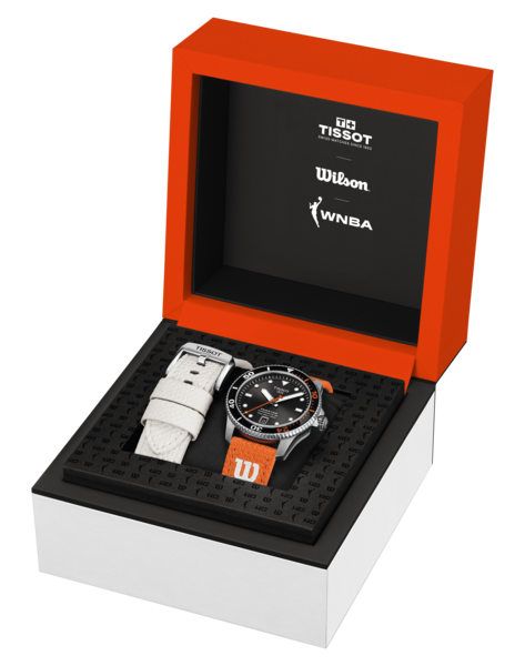 Jedna z najlepiej sprzedających się kolekcji Tissot doczekała się specjalnej edycji. Nowy model jest napędzany mechanizmem Powermatic 80 oraz posiada charakterystyczne białe i pomarańczowe akcenty nawiązujące do oficjalnych kolorów koszykarskiej ligi WNBA. Obracający się w jednym kierunku bezel zawiera 24-sekundowy zegar wyznaczający czas na przeprowadzenie akcji w koszykówce. To podkreślenie roli Tissot jako oficjalnego chronometrażysty WNBA. Ten zegarek jest idealny dla osób lubiących różne formy sportowej aktywności. Pasek wykonany jest z materiału Wilson WNBA Evo-NXT Premium Composite Game Material, z którego produkowane są piłki meczowe w najlepszej koszykarskiej lidze świata. Ten model posiada łatwy w użyciu system szybkiej wymiany paska Tissot, dając możliwość wyboru spośród szerokiej gamy kompatybilnych pasków Tissot. Czasomierz objęty jest dwuletnią, międzynarodową gwarancją producenta.