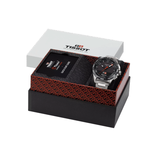 Połącz zegarek z aplikacją Tissot T-Connect, aby uzyskać dostęp do szczegółowych danych o swojej aktywności i wynikach. Dzięki regularnym aktualizacjom oprogramowania zawsze korzystasz z najnowszych funkcji i usprawnień. Pozostań w kontakcie przez cały dzień. Twój zegarek Tissot informuje Cię o połączeniach, wiadomościach, wydarzeniach z kalendarza i wielu innych – bezpośrednio na nadgarstku, gdy jest połączony z telefonem. Dzięki ładowaniu energią słoneczną Twój zegarek Tissot może działać przez wiele miesięcy bez potrzeby podłączania do prądu. Wbudowane pod tarczą ogniwa solarne magazynują światło i wydłużają czas pracy baterii. Sprawdź, jak korzystanie z wybranych funkcji i ładowanie słoneczne wpływają na poziom baterii. W aplikacji Tissot T-Connect zobaczysz przejrzyste statystyki zużycia energii, aby móc optymalizować korzystanie z zegarka. Rejestruj liczbę kroków, spalone kalorie, przebyty dystans i czas aktywności. Ustalaj swoje cele i motywuj się do codziennego ruchu – wszystko bezpośrednio z poziomu zegarka. Zawsze wiesz, gdzie jesteś. Zintegrowane z zegarkiem wysokościomierz, barometr i kompas 3-osiowy precyzyjnie wspierają Cię podczas każdej wyprawy w terenie. Rejestruj swoje górskie i piesze wyprawy z danymi takimi jak całkowity dystans, suma przewyższeń i dokładna trasa marszu. Wszystkie szlaki są zapisywane i dostępne w aplikacji Tissot T-Connect, dzięki czemu możesz je później przeglądać oraz analizować. Czasomierz objęty jest dwuletnią, międzynarodową gwarancją producenta.