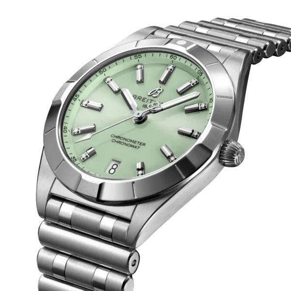 Z ogromną przyjemnością prezentujemy nową linię zegarków Chronomat 32 dla pań renomowanej szwajcarskiej marki Breitling. Ich piękno, urok docenią panie ceniące sobie sportowy, elegancki i niepowtarzalny styl czasomierzy. Producent zadbał  w sposób szczególny o gusta naszych wyjątkowych pań. W ofercie znajdziemy modele w złocie, stali, łączące stal z elementami ze złota. Nie zapomniano również o paniach ceniących sobie wyjątkowy urok diamentów w swoich zegarkach. Breitling słynie z wysokiej jakości produktów. Tym razem również nas nie zawiódł i zaoferował wyjątkowe, eleganckie czasomierze. Linia zegarków Chronomat 32 objęta jest dwuletnią, międzynarodową gwarancją producenta.
