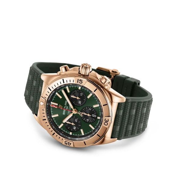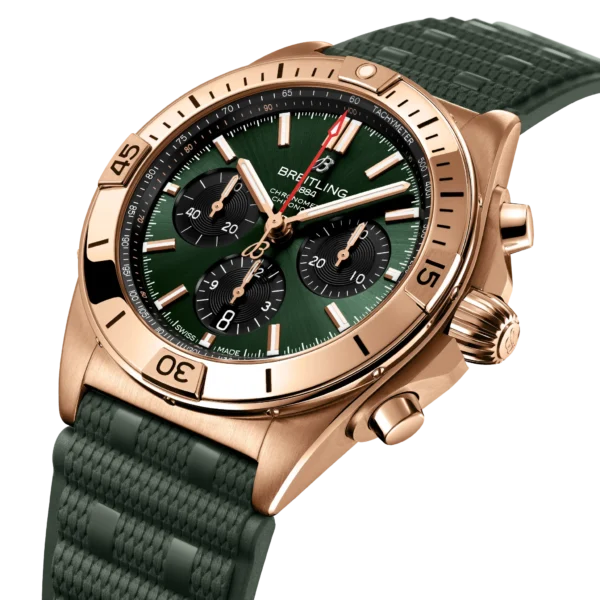 W kolekcji szwajcarskiej i cenionej manufaktury Bretling, model Chromoant wprowadzono w 1984 roku. Był to czas, gdzie prym wiodły cienkie zegarki kwarcowe. Marka postanowiła zainteresować klientów imponującym czasomierzem mechanicznym z funkcją chronografu. Powstał on na bazie chronografu Frecce Tricolori z 1983 roku, który był owocem kooperacji Breitlina z włoską eskadrą lotniczą. Uczczono w ten sposób stulecie marki, ugruntowano pozycję marki Breitling. Zegarek Breitling Chronomat w rozmiarze 42 mm dostępny jest w kopercie ze stali szlachetnej, ekskluzywnego czerwonego złota 18-karatowego. Wewnątrz koperty tego wyjątkowego chronografu znajdziemy manufakturowy mechanizm B01 z Certyfikatem Chronometru wydanym przez COSC. Przez przeszklony dekiel możemy podziwiać skomplikowany mechanizm chronografu. Całości dopełniają różne kolory tarcz oraz bransoleta typu „Rouleaux”. Breitling Chronomat 42 mm objęty jest pięcioletnią, międzynarodową gwarancją producenta.