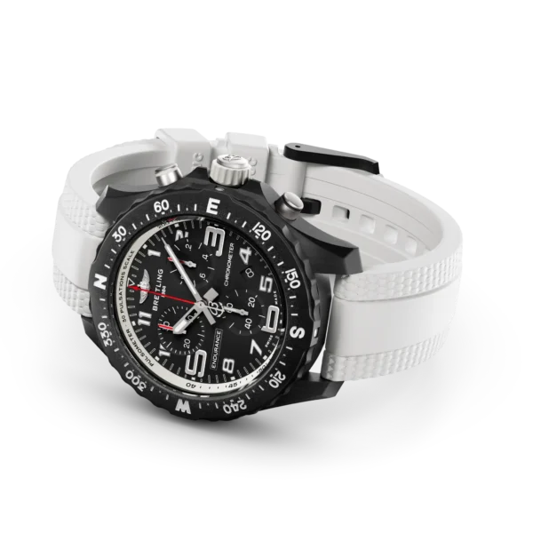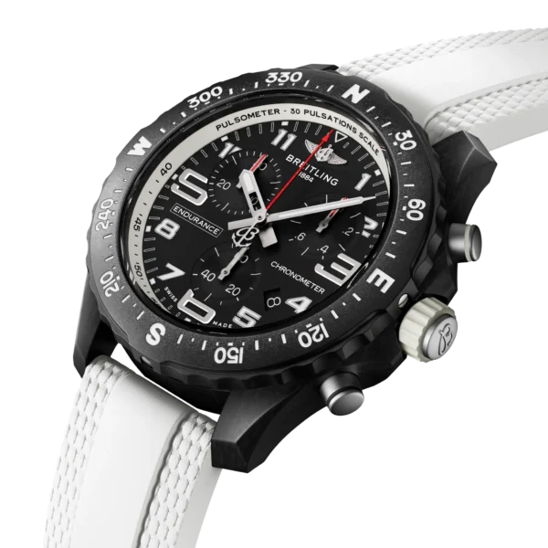 Zaprojektowany jako lekki zegarek dla sportowców i chronograf sportowy do codziennego użytku, Endurance Pro doskonale łączy innowacyjną technologię z żywym designem, tworząc najlepszy zegarek sportowy. Zaprojektowany dla mężczyzn i kobiet, których aktywny tryb życia łączy profesjonalny sposób myślenia ze sportowym stylem życia, Endurance Pro sprosta wyzwaniom rygorystycznego treningu, a jednocześnie jest wystarczająco modny, aby można go było nosić na co dzień. Endurance Pro ma ultralekką obudowę Breitlight®, wykonaną z wytrzymałego materiału, 3,3 razy lżejszego od tytanu i 5,8 razy lżejszego od stali nierdzewnej. Niemagnetyczny, stabilny termicznie i hipoalergiczny, Breitlight® jest wysoce odporny na zarysowania, przyczepność i korozję. Ma również wrażenie cieplejszego niż metal i ma lekko teksturowany efekt, co podkreśla oryginalność projektu. Materiał, dostępny wyłącznie w ofercie Breitling, jest w 100% wyprodukowany w Szwajcarii. Model Endurance Pro w wersji 44 mm lub 38 mm jest dostępny dla sportowców z mnóstwem kolorowych tarcz i gumowych pasków, z których wszystkie pasują do klamry typu Breitlight®. Obydwa rozmiary są napędzane odpowiednio przez kalibry 82 i 83 firmy Breitling, oba chronografy SuperQuartz™ z certyfikatem COSC, zapewniające wyjątkową precyzję. Czasomierz objęty jest dwuletnią, międzynarodową gwarancją producenta.