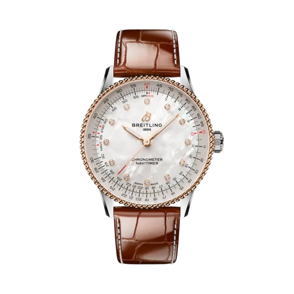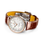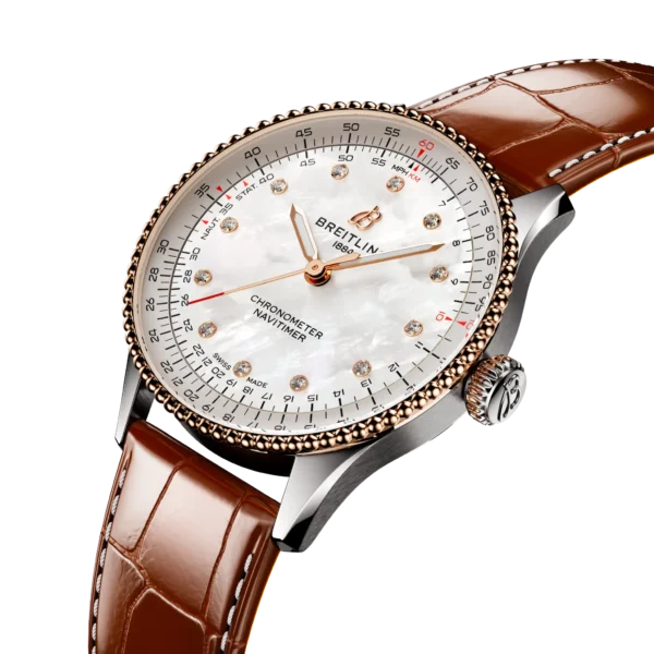 Ikona Breitlinga – na podróż. Navitimer to jeden z najbardziej rozpoznawalnych zegarków, jakie kiedykolwiek wyprodukowano. Znajduje się na kolekcjonerskich listach najwspanialszych zegarków wszechczasów. To, co zaczęło się w 1952 roku jako narzędzie dla pilotów, stało się czymś głębokim dla każdej osoby, która miała ze sobą ten zegarek w swojej osobistej podróży. Nasza ikona jest teraz dostępna w rozmiarach 36 i 32 mm dla kobiet i mężczyzn, którzy uwielbiają wygląd i styl zegarka o mniejszej średnicy. Podczas gdy 36-milimetrowy Navitimer ma koralikową ramkę i kultową okrągłą suwak logarytmiczny, który nadaje Navitimerowi niepowtarzalny wygląd, olśniewająca odmiana 32 mm rezygnuje z suwaka logarytmicznego na rzecz uproszczonej konstrukcji tarczy dopasowanej do jego smukłej średnicy. Ale te hity mają o wiele więcej do zaoferowania niż tylko nowe rozmiary. Odrobiny pasteli, masy perłowej i identyfikowalnych, szlachetnych materiałów w połączeniu z subtelnymi uszlachetnieniami nadają zegarkom biżuteryjny wygląd, dodając wszechstronną elegancję legendarnemu zegarkowi nawigacyjnemu, który jest gotowy na każdą podróż. Czasomierz objęty jest dwuletnią, międzynarodową gwarancję producenta.