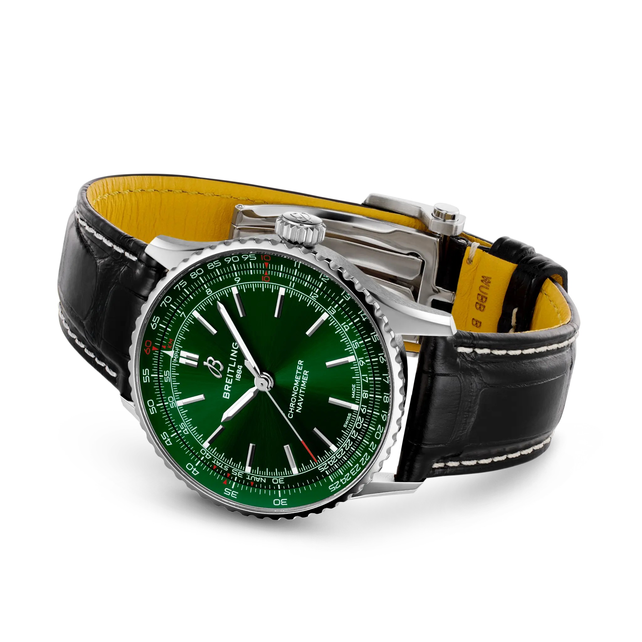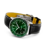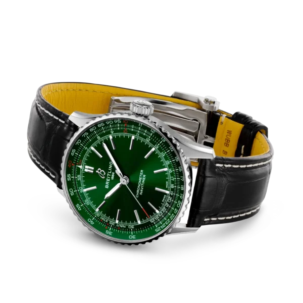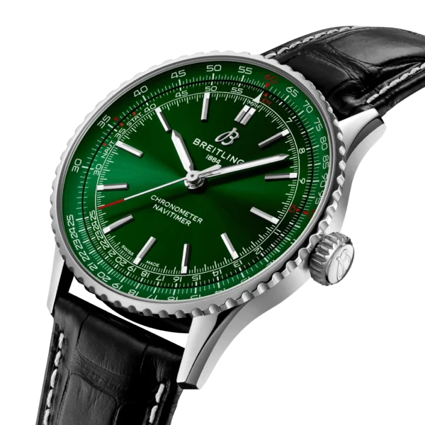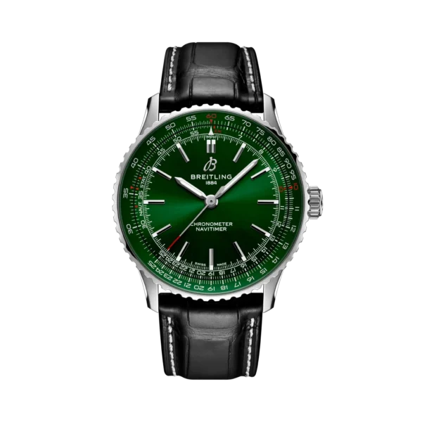 Najbardziej wszechstronny Navitimer firmy Breitling — do podróży. Navititime to jeden z najbardziej rozpoznawalnych zegarków, jakie kiedykolwiek wyprodukowano. Znajduje się na kolekcjonerskich listach najwspanialszych zegarków wszechczasów. To, co zaczęło się w 1952 roku jako narzędzie dla pilotów, stało się czymś głębokim dla każdej osoby, która miała ze sobą ten zegarek w swojej osobistej podróży. Zegarki Navitimer Automatic i Automatic GMT 41 podkreślają kultowy wygląd, pomijając chronograf, zachowując jednocześnie wyważoną kompozycję tarczy. Centralne umieszczenie skali 24-godzinnej na skali GMT i czysta tarcza automatu sprawiają, że skomplikowany suwak logarytmiczny wyróżnia się, jednocześnie poprawiając ogólną estetykę. Aby jeszcze bardziej udoskonalić kolekcję, zastosowano karbowaną ramkę, aby nadać jej nowoczesny charakter, a naprzemienne polerowane i szczotkowane wykończenia dodają dynamiczną grę światła. Paski ze skóry aligatora i bransoletki z bezszwowym zapięciem motylkowym zapewniają komfort i wygodę. Paleta zawiera kolorowe tarcze, oprawione w stal nierdzewną lub 18-karatowe czerwone złoto. To nowe odkrycie Navitimera, łączące klasykę ze współczesnością, jest dostosowane zarówno do entuzjastów, jak i osób dbających o styl, co stanowi obietnicę zaangażowania Breitlinga w dziedzictwo i innowacje w każdym zegarku. Czasomierz objęty jest dwuletnią, międzynarodową gwarancją producenta.
