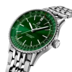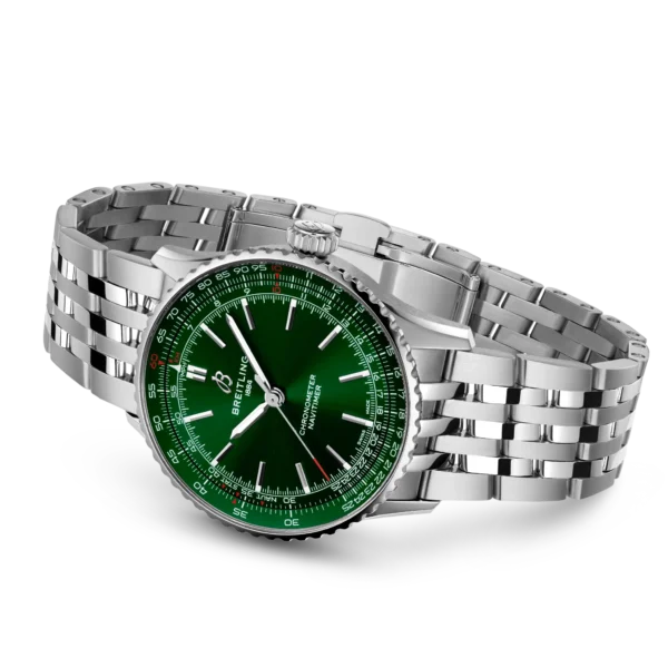 Najbardziej wszechstronny Navitimer firmy Breitling — do podróży. Navititime to jeden z najbardziej rozpoznawalnych zegarków, jakie kiedykolwiek wyprodukowano. Znajduje się na kolekcjonerskich listach najwspanialszych zegarków wszechczasów. To, co zaczęło się w 1952 roku jako narzędzie dla pilotów, stało się czymś głębokim dla każdej osoby, która miała ze sobą ten zegarek w swojej osobistej podróży. Zegarki Navitimer Automatic i Automatic GMT 41 podkreślają kultowy wygląd, pomijając chronograf, zachowując jednocześnie wyważoną kompozycję tarczy. Centralne umieszczenie skali 24-godzinnej na skali GMT i czysta tarcza automatu sprawiają, że skomplikowany suwak logarytmiczny wyróżnia się, jednocześnie poprawiając ogólną estetykę. Aby jeszcze bardziej udoskonalić kolekcję, zastosowano karbowaną ramkę, aby nadać jej nowoczesny charakter, a naprzemienne polerowane i szczotkowane wykończenia dodają dynamiczną grę światła. Paski ze skóry aligatora i bransoletki z bezszwowym zapięciem motylkowym zapewniają komfort i wygodę. Paleta zawiera kolorowe tarcze, oprawione w stal nierdzewną lub 18-karatowe czerwone złoto. To nowe odkrycie Navitimera, łączące klasykę ze współczesnością, jest dostosowane zarówno do entuzjastów, jak i osób dbających o styl, co stanowi obietnicę zaangażowania Breitlinga w dziedzictwo i innowacje w każdym zegarku. Czasomierz objęty jest dwuletnią, międzynarodową gwarancją producenta.