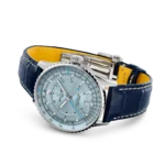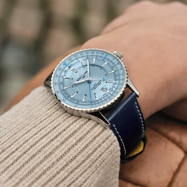Najbardziej wszechstronny Navitimer firmy Breitling — do podróży. Navititime to jeden z najbardziej rozpoznawalnych zegarków, jakie kiedykolwiek wyprodukowano. Znajduje się na kolekcjonerskich listach najwspanialszych zegarków wszechczasów. To, co zaczęło się w 1952 roku jako narzędzie dla pilotów, stało się czymś głębokim dla każdej osoby, która miała ze sobą ten zegarek w swojej osobistej podróży. Zegarki Navitimer Automatic i Automatic GMT 41 podkreślają kultowy wygląd, pomijając chronograf, zachowując jednocześnie wyważoną kompozycję tarczy. Centralne umieszczenie skali 24-godzinnej na skali GMT i czysta tarcza automatu sprawiają, że skomplikowany suwak logarytmiczny wyróżnia się, jednocześnie poprawiając ogólną estetykę. Aby jeszcze bardziej udoskonalić kolekcję, zastosowano karbowaną ramkę, aby nadać jej nowoczesny charakter, a naprzemienne polerowane i szczotkowane wykończenia dodają dynamiczną grę światła. Paski ze skóry aligatora i bransoletki z bezszwowym zapięciem motylkowym zapewniają komfort i wygodę. Paleta zawiera kolorowe tarcze, oprawione w stal nierdzewną lub 18-karatowe czerwone złoto. To nowe odkrycie Navitimera, łączące klasykę ze współczesnością, jest dostosowane zarówno do entuzjastów, jak i osób dbających o styl, co stanowi obietnicę zaangażowania Breitlinga w dziedzictwo i innowacje w każdym zegarku. Czasomierz objęty jest dwuletnią, międzynarodową gwarancją producenta.
