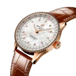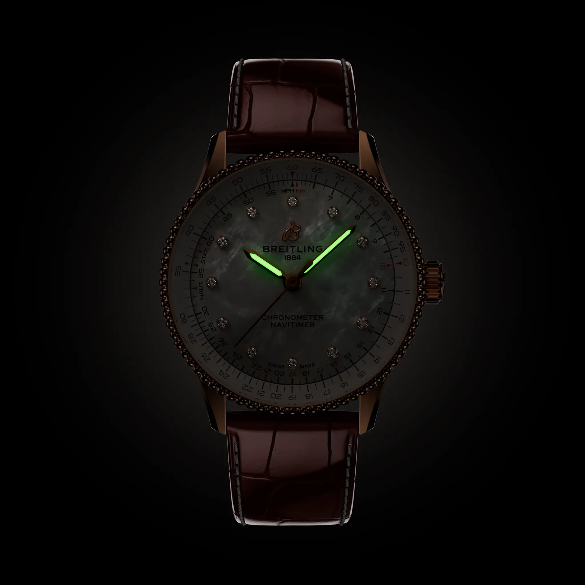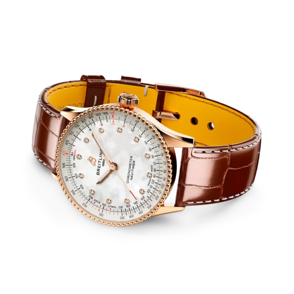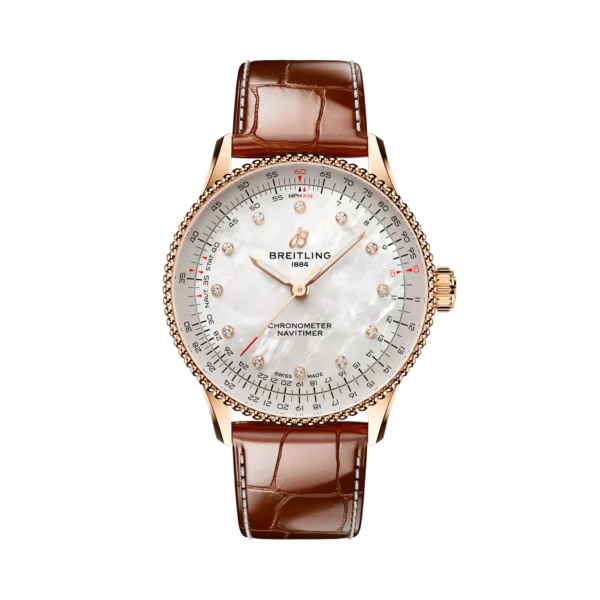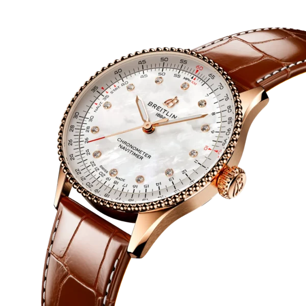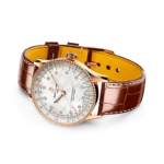Ikona Breitlinga – na podróż. Navitimer to jeden z najbardziej rozpoznawalnych zegarków, jakie kiedykolwiek wyprodukowano. Znajduje się na kolekcjonerskich listach najwspanialszych zegarków wszechczasów. To, co zaczęło się w 1952 roku jako narzędzie dla pilotów, stało się czymś głębokim dla każdej osoby, która miała ze sobą ten zegarek w swojej osobistej podróży. Nasza ikona jest teraz dostępna w rozmiarach 36 i 32 mm dla kobiet i mężczyzn, którzy uwielbiają wygląd i styl zegarka o mniejszej średnicy. Podczas gdy 36-milimetrowy Navitimer ma koralikową ramkę i kultową okrągłą suwak logarytmiczny, który nadaje Navitimerowi niepowtarzalny wygląd, olśniewająca odmiana 32 mm rezygnuje z suwaka logarytmicznego na rzecz uproszczonej konstrukcji tarczy dopasowanej do jego smukłej średnicy. Ale te hity mają o wiele więcej do zaoferowania niż tylko nowe rozmiary. Odrobiny pasteli, masy perłowej i identyfikowalnych, szlachetnych materiałów w połączeniu z subtelnymi uszlachetnieniami nadają zegarkom biżuteryjny wygląd, dodając wszechstronną elegancję legendarnemu zegarkowi nawigacyjnemu, który jest gotowy na każdą podróż. Czasomierz objęty jest dwuletnią, międzynarodową gwarancją producenta.