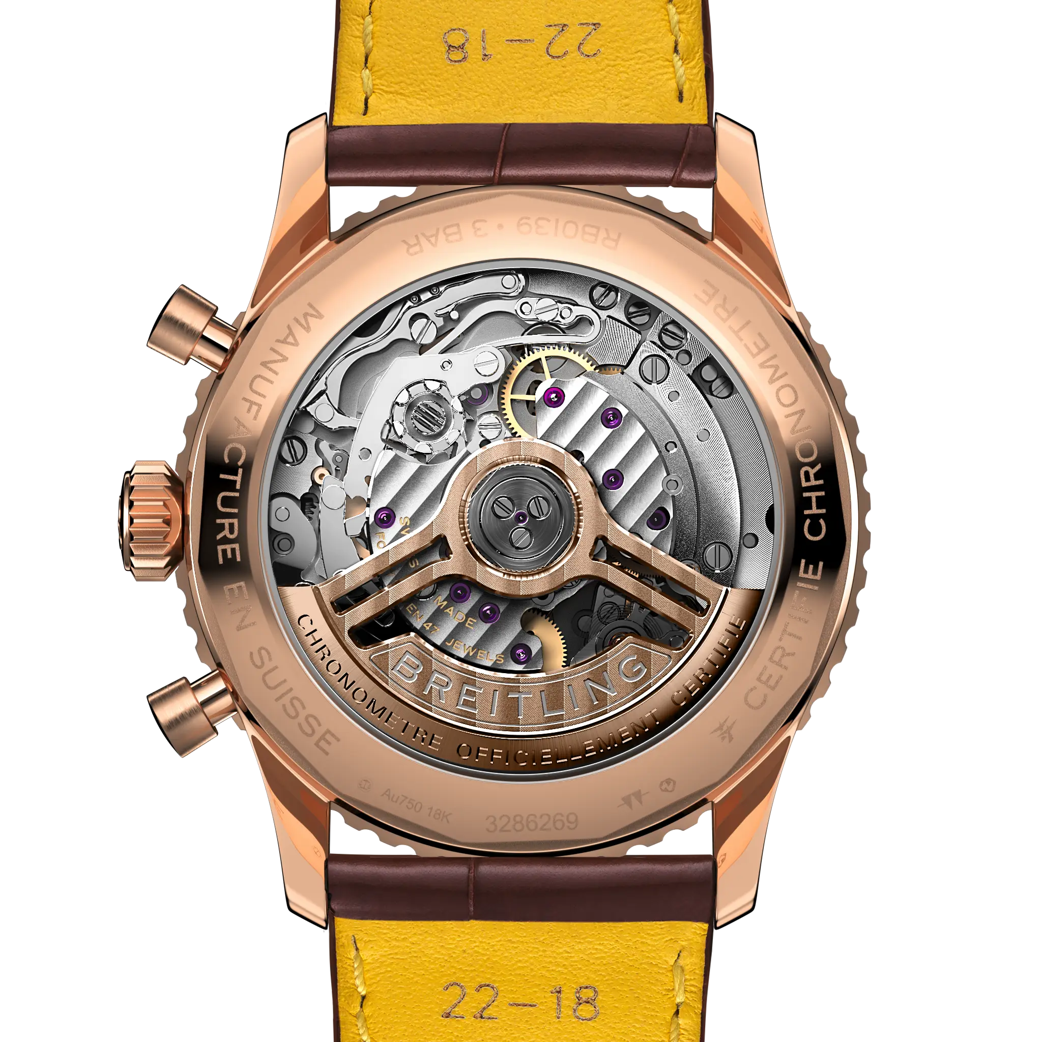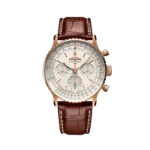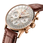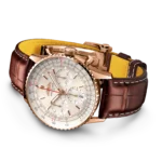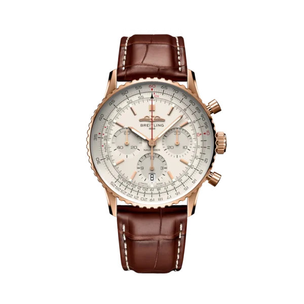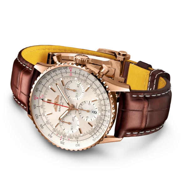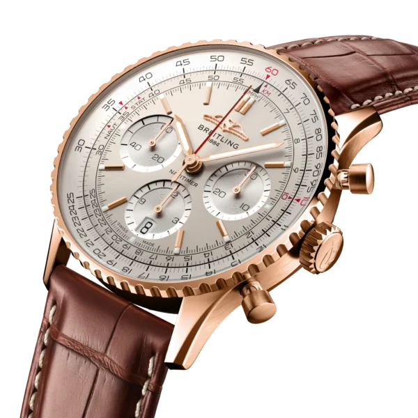 W ofercie renomowanej szwajcarskiej marki Breitling pojawił się nowy Navitimer chronograf nawiązujący do kultowego modelu opracowanego w 1952 r. przez Willy’ego Breitlinga. Czasomierz wyposażono w okrągły suwak logarytmiczny, który pozwalał pilotom na wykonywanie przy jego pomocy wszelkich niezbędnych obliczeń podczas lotu samolotem. W 1954 roku Stowarzyszenie Właścicieli i Pilotów Samolotów (AOPA) ogłosiło ten niespotykany i wyjątkowy czasomierz oficjalnym zegarkiem naręcznym dla pilotów. Navitimer chronograf był noszony przez pilotów wielu linii lotniczych. W 1962 roku nosił go także podczas misji kosmicznej astronauta Scott Carpenter. Obecna odsłona tego kultowego modelu bardzo mocno nawiązuje do swojego pierwowzoru łącząc nowoczesne rozwiązania z tradycyjnym zegarmistrzostwem, stylistyką z przed lat. Marka zdecydowała się między innymi na powrót do dawnego logo. Wewnątrz koperty pracuje wysoce ceniony, manufakturowy mechanizm B01, którego rezerwa chodu, przy w pełni nakręconej sprężynie w bębnie wynosi 70 godzin. Całości dopełnia przepiękna tarcza chronografu z tachometrem prezentująca się wyjątkowo. Zastosowano powłokę antyrefleksyjnej na szkle dla zdecydowanej poprawy jego czytelności. Koperta to czerwone 18k złoto. Pasek z aligatora został ozdobiony białym przeszyciem. Breitling Navitimer objęty jest pięcioletnią, międzynarodową gwarancją producenta.