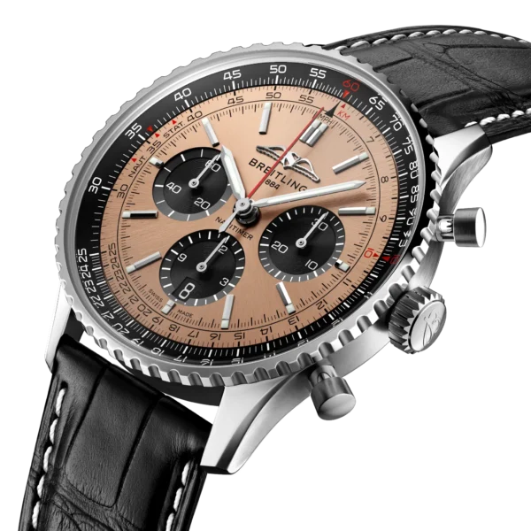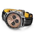 W ofercie renomowanej szwajcarskiej marki Breitling pojawił się nowy Navitimer chronograf nawiązujący do  kultowego modelu opracowanego w 1952 r. przez Willy’ego Breitlinga. Czasomierz wyposażono w okrągły suwak logarytmiczny, który pozwalał pilotom na wykonywanie przy jego pomocy wszelkich niezbędnych obliczeń podczas lotu samolotem. W 1954 roku Stowarzyszenie Właścicieli i Pilotów Samolotów (AOPA) ogłosiło ten niespotykany i wyjątkowy czasomierz oficjalnym zegarkiem naręcznym dla pilotów. Navitimer chronograf był noszony przez pilotów wielu linii lotniczych. W 1962 roku nosił go także podczas misji kosmicznej astronauta Scott Carpenter. Obecna odsłona tego kultowego modelu bardzo mocno nawiązuje do swojego pierwowzoru łącząc nowoczesne rozwiązania z tradycyjnym zegarmistrzostwem, stylistyką z przed lat. Marka zdecydowała się między innymi na powrót do dawnego logo. Wewnątrz koperty pracuje wysoce ceniony, manufakturowy mechanizm B01, którego rezerwa chodu, przy w pełni nakręconej sprężynie w bębnie wynosi 70 godzin. Całości dopełnia przepiękna tarcza chronografu z tachometrem prezentująca się wyjątkowo. Zastosowano powłokę antyrefleksyjnej na szkle dla zdecydowanej poprawy jego czytelności. Pasek został wykonany ze skóry aligatora, ozdobiono go dodtkowo białym przeszyciem. Breitling Navitimer objęty jest pięcioletnią, międzynarodową gwarancją producenta.