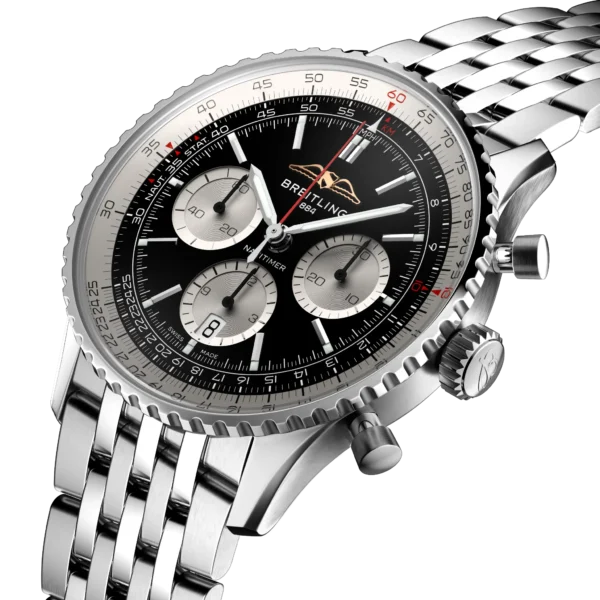 W ofercie renomowanej szwajcarskiej marki Breitling pojawił się nowy Navitimer chronograf nawiązujący do  kultowego modelu opracowanego w 1952 r. przez Willy’ego Breitlinga. Czasomierz wyposażono w okrągły suwak logarytmiczny, który pozwalał pilotom na wykonywanie przy jego pomocy wszelkich niezbędnych obliczeń podczas lotu samolotem. W 1954 roku Stowarzyszenie Właścicieli i Pilotów Samolotów (AOPA) ogłosiło ten niespotykany i wyjątkowy czasomierz oficjalnym zegarkiem naręcznym dla pilotów. Navitimer chronograf był noszony przez pilotów wielu linii lotniczych. W 1962 roku nosił go także podczas misji kosmicznej astronauta Scott Carpenter. Obecna odsłona tego kultowego modelu bardzo mocno nawiązuje do swojego pierwowzoru łącząc nowoczesne rozwiązania z tradycyjnym zegarmistrzostwem, stylistyką z przed lat. Marka zdecydowała się między innymi na powrót do dawnego logo. Wewnątrz koperty pracuje wysoce ceniony, manufakturowy mechanizm B01, którego rezerwa chodu, przy w pełni nakręconej sprężynie w bębnie wynosi 70 godzin. Całości dopełnia przepiękna tarcza chronografu z tachometrem prezentująca się wyjątkowo. Zastosowano powłokę antyrefleksyjnej na szkle dla zdecydowanej poprawy jego czytelności. Bransoleta została wykonany ze stali. Breitling Navitimer objęty jest pięcioletnią, międzynarodową gwarancją producenta.