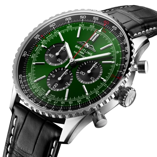 W ofercie renomowanej szwajcarskiej marki Breitling pojawił się nowy Navitimer chronograf nawiązujący do kultowego modelu opracowanego w 1952 r. przez Willy’ego Breitlinga. Czasomierz wyposażono w okrągły suwak logarytmiczny, który pozwalał pilotom na wykonywanie przy jego pomocy wszelkich niezbędnych obliczeń podczas lotu samolotem. W 1954 roku Stowarzyszenie Właścicieli i Pilotów Samolotów (AOPA) ogłosiło ten niespotykany i wyjątkowy czasomierz oficjalnym zegarkiem naręcznym dla pilotów. Navitimer chronograf był noszony przez pilotów wielu linii lotniczych. W 1962 roku nosił go także podczas misji kosmicznej astronauta Scott Carpenter. Obecna odsłona tego kultowego modelu bardzo mocno nawiązuje do swojego pierwowzoru łącząc nowoczesne rozwiązania z tradycyjnym zegarmistrzostwem, stylistyką z przed lat. Marka zdecydowała się między innymi na powrót do dawnego logo. Wewnątrz koperty pracuje wysoce ceniony, manufakturowy mechanizm B01, którego rezerwa chodu, przy w pełni nakręconej sprężynie w bębnie wynosi 70 godzin. Całości dopełnia przepiękna tarcza chronografu z tachometrem prezentująca się wyjątkowo. Zastosowano powłokę antyrefleksyjnej na szkle dla zdecydowanej poprawy jego czytelności. Pasek wykonany ze skóry aligatora, ozdobiono go dodatkowo białym przeszyciem. Breitling Navitimer objęty jest pięcioletnią, międzynarodową gwarancją producenta.