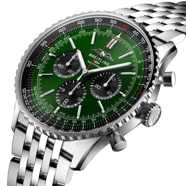 W ofercie renomowanej szwajcarskiej marki Breitling pojawił się nowy Navitimer chronograf nawiązujący do  kultowego modelu opracowanego w 1952 r. przez Willy’ego Breitlinga. Czasomierz wyposażono w okrągły suwak logarytmiczny, który pozwalał pilotom na wykonywanie przy jego pomocy wszelkich niezbędnych obliczeń podczas lotu samolotem. W 1954 roku Stowarzyszenie Właścicieli i Pilotów Samolotów (AOPA) ogłosiło ten niespotykany i wyjątkowy czasomierz oficjalnym zegarkiem naręcznym dla pilotów. Navitimer chronograf był noszony przez pilotów wielu linii lotniczych. W 1962 roku nosił go także podczas misji kosmicznej astronauta Scott Carpenter. Obecna odsłona tego kultowego modelu bardzo mocno nawiązuje do swojego pierwowzoru łącząc nowoczesne rozwiązania z tradycyjnym zegarmistrzostwem, stylistyką z przed lat. Marka zdecydowała się między innymi na powrót do dawnego logo. Wewnątrz koperty pracuje wysoce ceniony, manufakturowy mechanizm B01, którego rezerwa chodu, przy w pełni nakręconej sprężynie w bębnie wynosi 70 godzin. Całości dopełnia przepiękna tarcza chronografu z tachometrem prezentująca się wyjątkowo. Zastosowano powłokę antyrefleksyjnej na szkle dla zdecydowanej poprawy jego czytelności. Bransoleta została wykonany ze stali. Breitling Navitimer objęty jest pięcioletnią, międzynarodową gwarancją producenta.