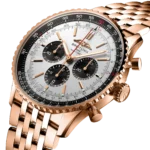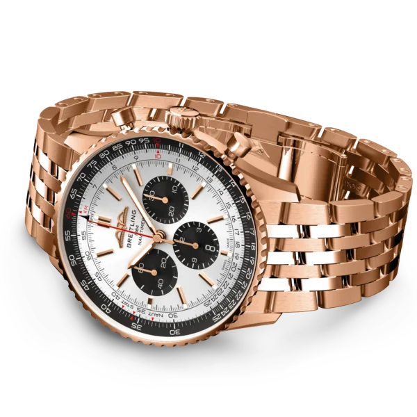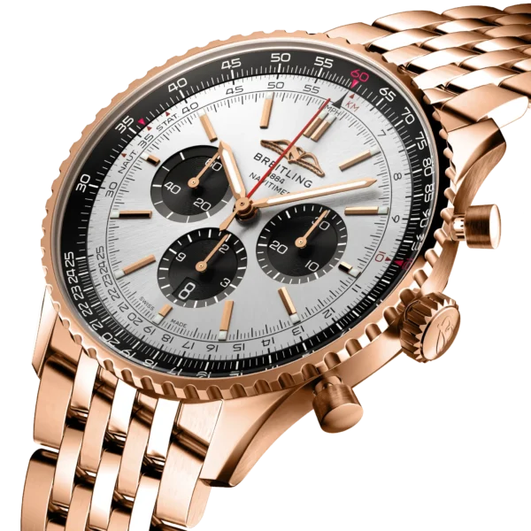 W ofercie renomowanej szwajcarskiej marki Breitling pojawił się nowy Navitimer chronograf w złotej kopercie nawiązujący do kultowego modelu opracowanego w 1952 r. przez Willy’ego Breitlinga. Czasomierz wyposażono w okrągły suwak logarytmiczny, który pozwalał pilotom na wykonywanie przy jego pomocy wszelkich niezbędnych obliczeń podczas lotu samolotem. W 1954 roku Stowarzyszenie Właścicieli i Pilotów Samolotów (AOPA) ogłosiło ten niespotykany i wyjątkowy czasomierz oficjalnym zegarkiem naręcznym dla pilotów. Navitimer chronograf był noszony przez pilotów wielu linii lotniczych. W 1962 roku nosił go także podczas misji kosmicznej astronauta Scott Carpenter. Obecna odsłona tego kultowego modelu bardzo mocno nawiązuje do swojego pierwowzoru łącząc nowoczesne rozwiązania z tradycyjnym zegarmistrzostwem, stylistyką z przed lat. Marka zdecydowała się między innymi na powrót do dawnego logo. Wewnątrz koperty pracuje wysoce ceniony, manufakturowy mechanizm B01, którego rezerwa chodu, przy w pełni nakręconej sprężynie w bębnie wynosi 70 godzin. Całości dopełnia przepiękna tarcza chronografu z tachometrem prezentująca się wyjątkowo. Zastosowano powłokę antyrefleksyjnej na szkle dla zdecydowanej poprawy jego czytelności. Koperta jak i bransoleta zostały wykonane z czerwonego złota 18 k. Breitling Navitimer objęty jest pięcioletnią, międzynarodową gwarancją producenta.