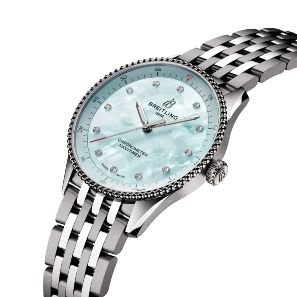 Ikona Breitlinga – na podróż. Navitimer to jeden z najbardziej rozpoznawalnych zegarków, jakie kiedykolwiek wyprodukowano. Znajduje się na kolekcjonerskich listach najwspanialszych zegarków wszechczasów. To, co zaczęło się w 1952 roku jako narzędzie dla pilotów, stało się czymś głębokim dla każdej osoby, która miała ze sobą ten zegarek w swojej osobistej podróży. Nasza ikona jest teraz dostępna w rozmiarach 36 i 32 mm dla kobiet i mężczyzn, którzy uwielbiają wygląd i styl zegarka o mniejszej średnicy. Podczas gdy 36-milimetrowy Navitimer ma koralikową ramkę i kultową okrągłą suwak logarytmiczny, który nadaje Navitimerowi niepowtarzalny wygląd, olśniewająca odmiana 32 mm rezygnuje z suwaka logarytmicznego na rzecz uproszczonej konstrukcji tarczy dopasowanej do jego smukłej średnicy. Ale te hity mają o wiele więcej do zaoferowania niż tylko nowe rozmiary. Odrobiny pasteli, masy perłowej i identyfikowalnych, szlachetnych materiałów w połączeniu z subtelnymi uszlachetnieniami nadają zegarkom biżuteryjny wygląd, dodając wszechstronną elegancję legendarnemu zegarkowi nawigacyjnemu, który jest gotowy na każdą podróż. Czasomierz objęty jest dwuletnią, międzynarodową gwarancją producenta.