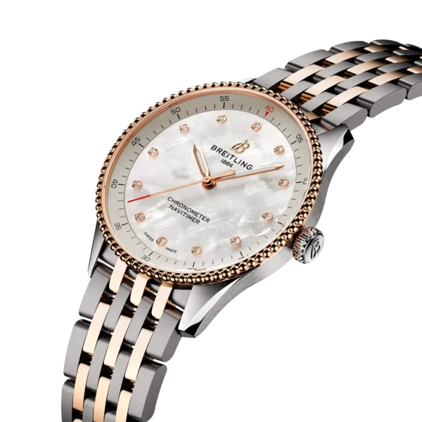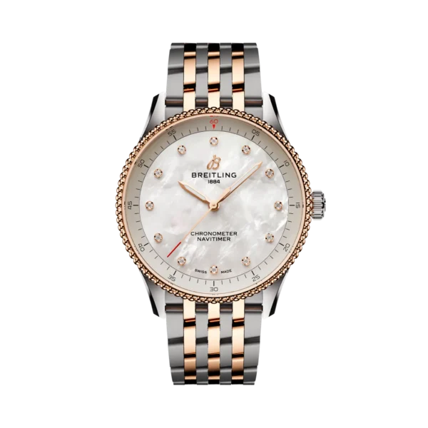 Ikona Breitlinga – na podróż. Navitimer to jeden z najbardziej rozpoznawalnych zegarków, jakie kiedykolwiek wyprodukowano. Znajduje się na kolekcjonerskich listach najwspanialszych zegarków wszechczasów. To, co zaczęło się w 1952 roku jako narzędzie dla pilotów, stało się czymś głębokim dla każdej osoby, która miała ze sobą ten zegarek w swojej osobistej podróży. Nasza ikona jest teraz dostępna w rozmiarach 36 i 32 mm dla kobiet i mężczyzn, którzy uwielbiają wygląd i styl zegarka o mniejszej średnicy. Podczas gdy 36-milimetrowy Navitimer ma koralikową ramkę i kultową okrągłą suwak logarytmiczny, który nadaje Navitimerowi niepowtarzalny wygląd, olśniewająca odmiana 32 mm rezygnuje z suwaka logarytmicznego na rzecz uproszczonej konstrukcji tarczy dopasowanej do jego smukłej średnicy. Ale te hity mają o wiele więcej do zaoferowania niż tylko nowe rozmiary. Odrobiny pasteli, masy perłowej i identyfikowalnych, szlachetnych materiałów w połączeniu z subtelnymi uszlachetnieniami nadają zegarkom biżuteryjny wygląd, dodając wszechstronną elegancję legendarnemu zegarkowi nawigacyjnemu, który jest gotowy na każdą podróż. Czasomierz objęty jest dwuletnią, międzynarodową gwarancję producenta.