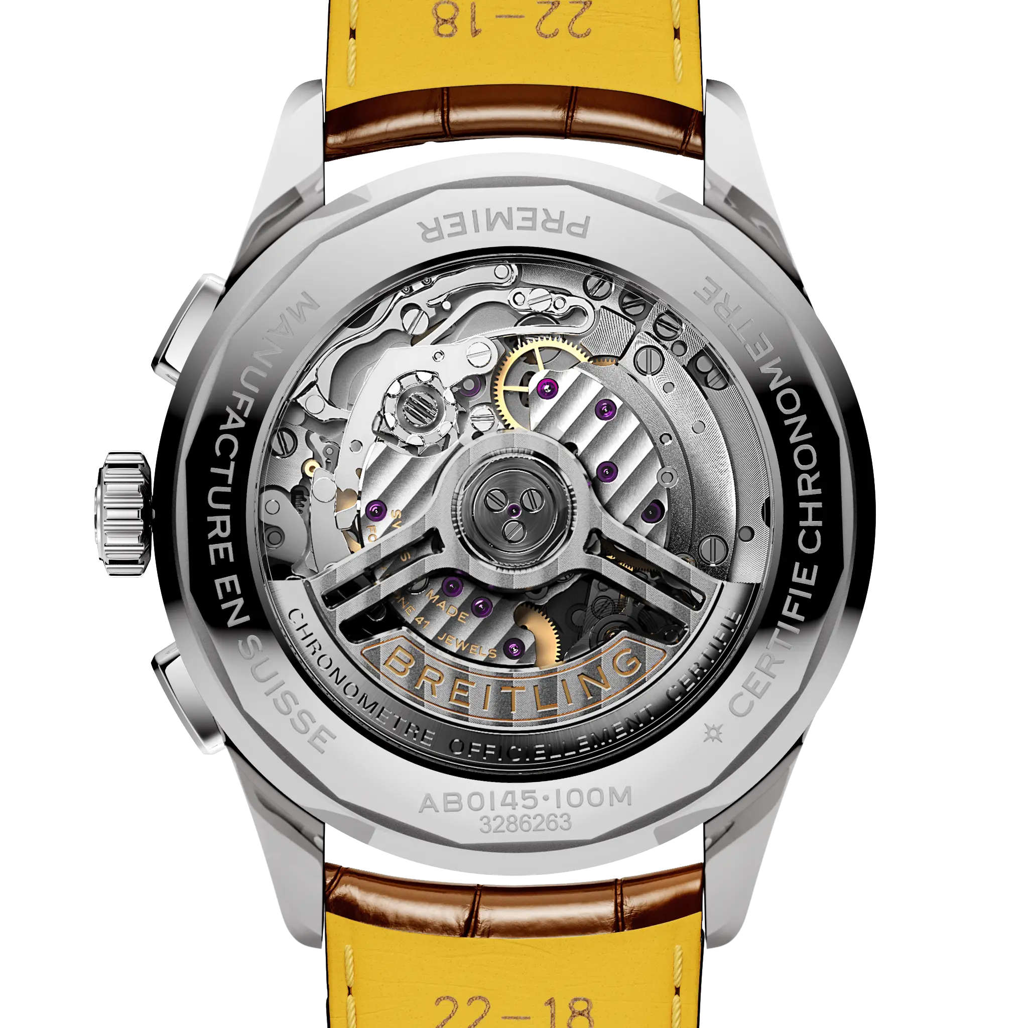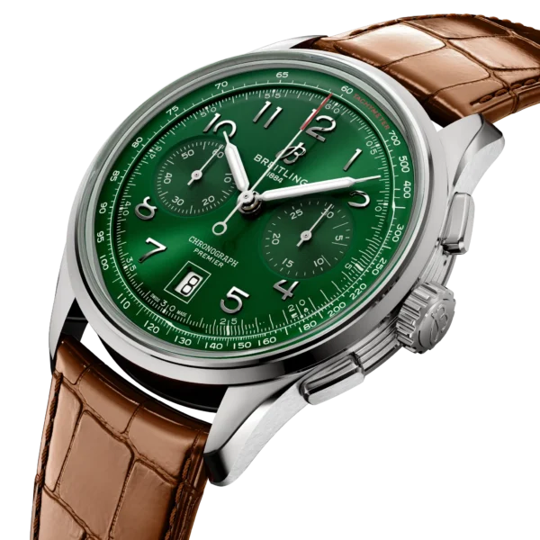 Na początku lat czterdziestych Willy Breitling marzył już o czasie po wojnie, kiedy użyteczność ustąpi miejsca nieokiełznanemu optymizmowi. Zaczął projektować chronograf, który byłby funkcjonalny, ale także niezaprzeczalnie elegancki i nieskończenie wygodny w noszeniu – jego zdaniem „niewątpliwy znak nienagannego smaku”. Nazwał tę nową linię Premier. Aby stworzyć nowoczesny model Premier, Breitling zachował charakterystyczne detale w stylu vintage. Czasomierz posiada charakterystyczne opływowe, przyciski obsługujące chronograf. Model Premier B01 Chronograph 42 jest dostępny z szeroką gamą kolorów tarczy i materiałów, z których wykonana jest koperta. Do wyboru jest klasyczny pasek ze skóry aligatora lub elegancka metalowa bransoleta z 7 rzędami. Dzisiejszy Premier również spełnia bezkompromisowe standardy techniczne Willy’ego Breitlinga dzięki wyjątkowemu samozwijającemu się mechanizmowi — certyfikowanemu przez COSC kaliberowi produkcji Breitling 01 — zaprojektowanemu z myślą o maksymalnej precyzji, niezawodności i funkcjonalności. Premier B01 Chronograph 42mm objęty jest pięcioletnią, międzynarodową gwarancją producenta.