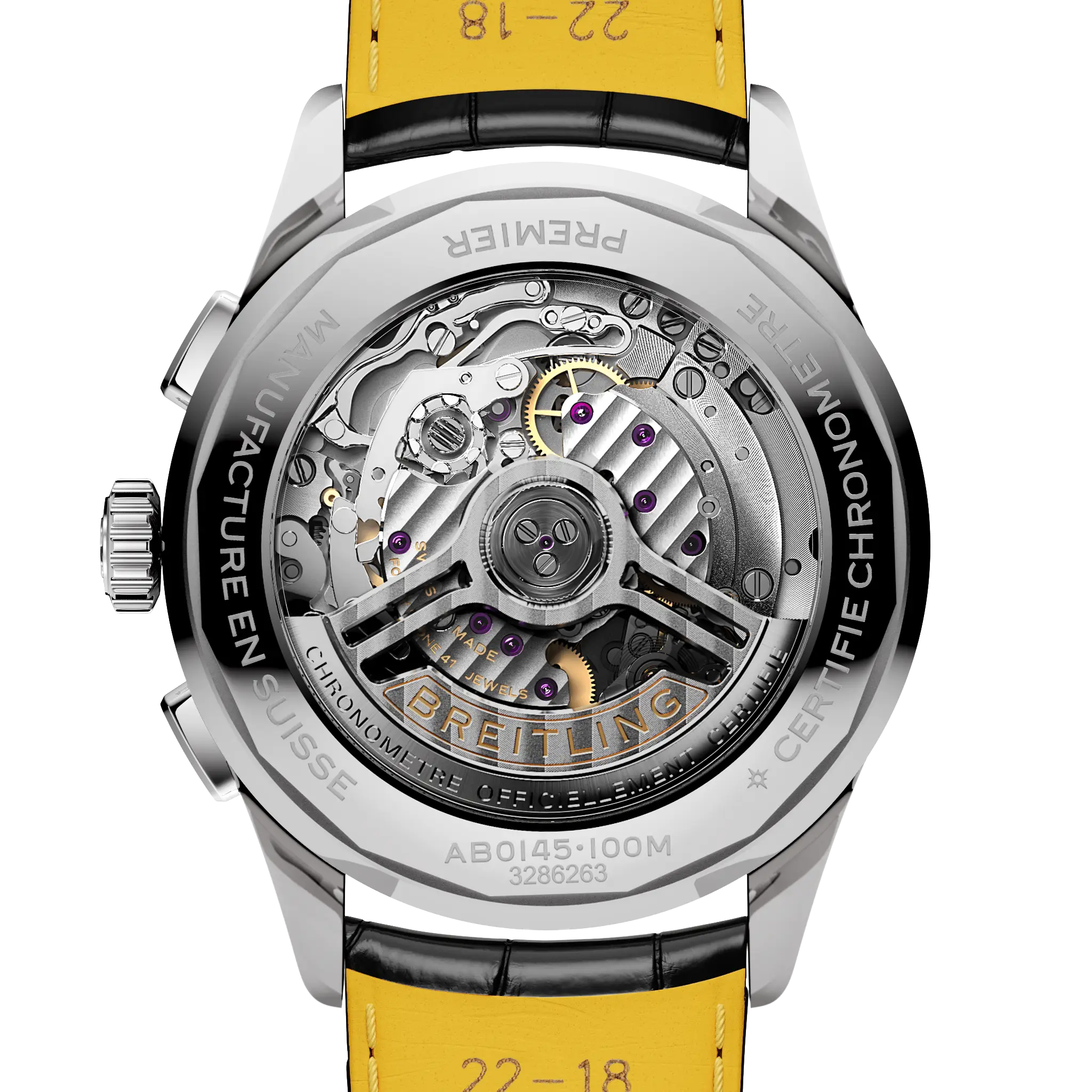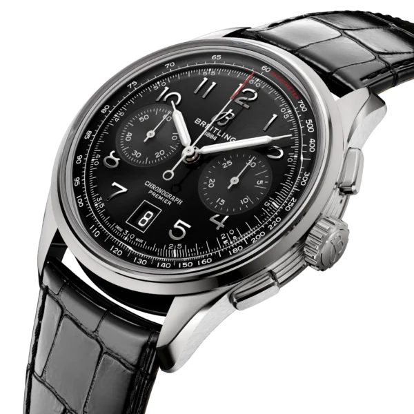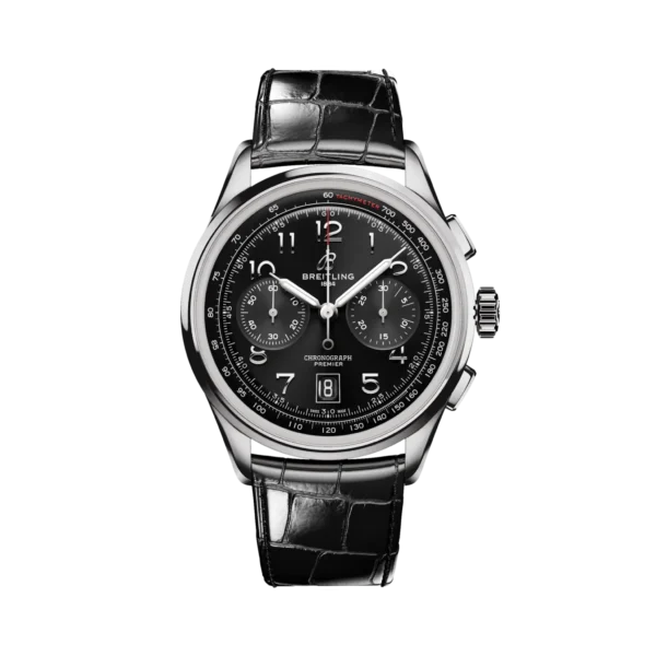 Na początku lat czterdziestych Willy Breitling marzył już o czasie po wojnie, kiedy użyteczność ustąpi miejsca nieokiełznanemu optymizmowi. Zaczął projektować chronograf, który byłby funkcjonalny, ale także niezaprzeczalnie elegancki i nieskończenie wygodny w noszeniu – jego zdaniem „niewątpliwy znak nienagannego smaku”. Nazwał tę nową linię Premier. Aby stworzyć nowoczesny model Premier, Breitling zachował charakterystyczne detale w stylu vintage. Czasomierz posiada charakterystyczne opływowe, przyciski obsługujące chronograf. Model Premier B01 Chronograph 42 jest dostępny z szeroką gamą kolorów tarczy i materiałów, z których wykonana jest koperta. Do wyboru jest klasyczny pasek ze skóry aligatora lub elegancka metalowa bransoleta z 7 rzędami. Dzisiejszy Premier również spełnia bezkompromisowe standardy techniczne Willy’ego Breitlinga dzięki wyjątkowemu samozwijającemu się mechanizmowi — certyfikowanemu przez COSC kaliberowi produkcji Breitling 01 — zaprojektowanemu z myślą o maksymalnej precyzji, niezawodności i funkcjonalności. Premier B01 Chronograph 42mm objęty jest pięcioletnią, międzynarodową gwarancją producenta.