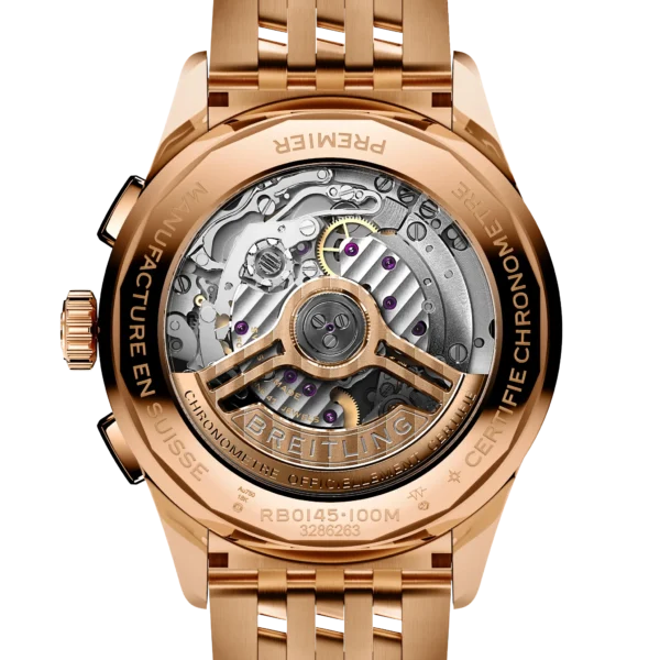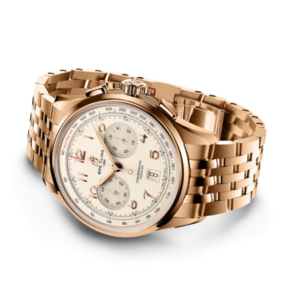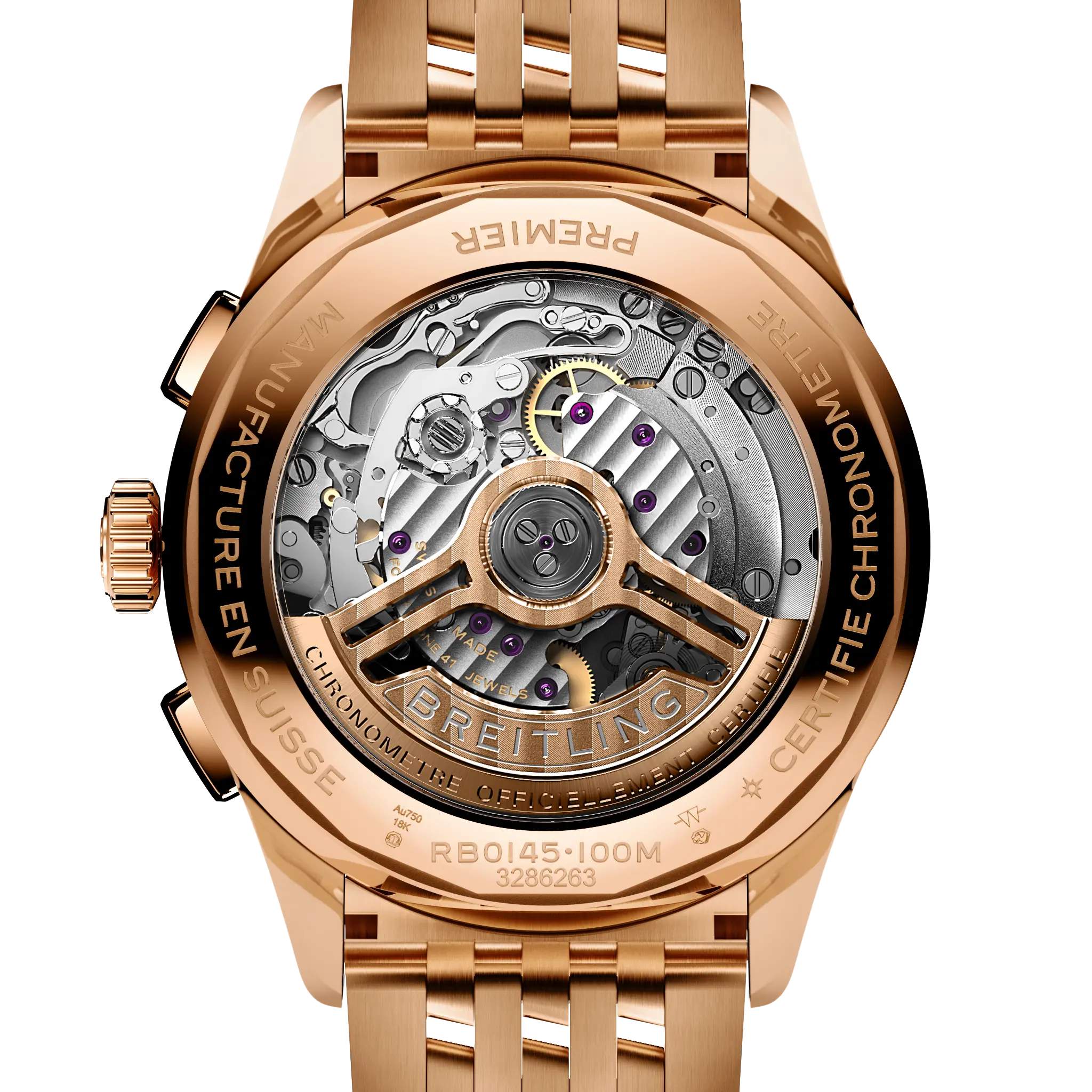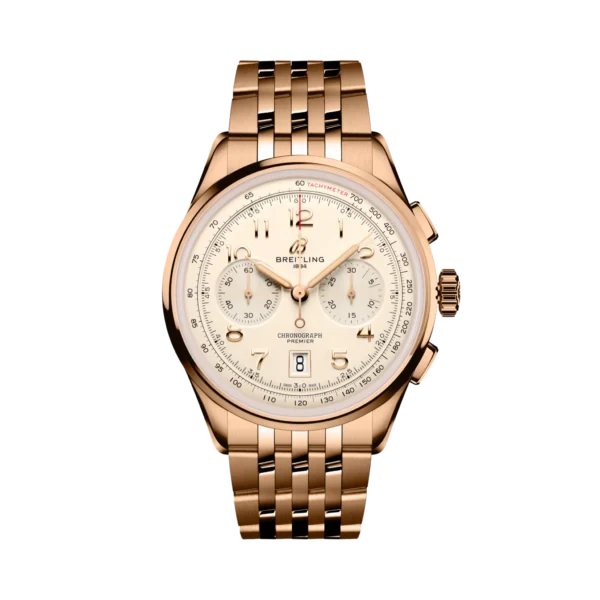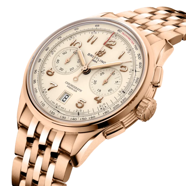 Na początku lat czterdziestych Willy Breitling marzył już o czasie po wojnie, kiedy użyteczność ustąpi miejsca nieokiełznanemu optymizmowi. Zaczął projektować chronograf, który byłby funkcjonalny, ale także niezaprzeczalnie elegancki i nieskończenie wygodny w noszeniu – jego zdaniem „niewątpliwy znak nienagannego smaku”. Nazwał tę nową linię Premier. Aby stworzyć nowoczesny model Premier, Breitling zachował charakterystyczne detale w stylu vintage. Czasomierz posiada charakterystyczne opływowe, przyciski obsługujące chronograf. Model Premier B01 Chronograph 42 jest dostępny z szeroką gamą kolorów tarczy i materiałów, z których wykonana jest koperta. Do wyboru jest klasyczny pasek ze skóry aligatora lub elegancka metalowa bransoleta z 7 rzędami. Dzisiejszy Premier również spełnia bezkompromisowe standardy techniczne Willy’ego Breitlinga dzięki wyjątkowemu samozwijającemu się mechanizmowi — certyfikowanemu przez COSC kaliberowi produkcji Breitling 01 — zaprojektowanemu z myślą o maksymalnej precyzji, niezawodności i funkcjonalności. Premier B01 Chronograph 42mm objęty jest pięcioletnią, międzynarodową gwarancją producenta.