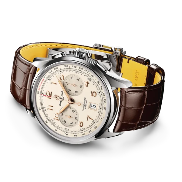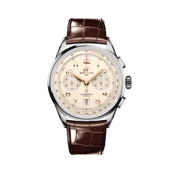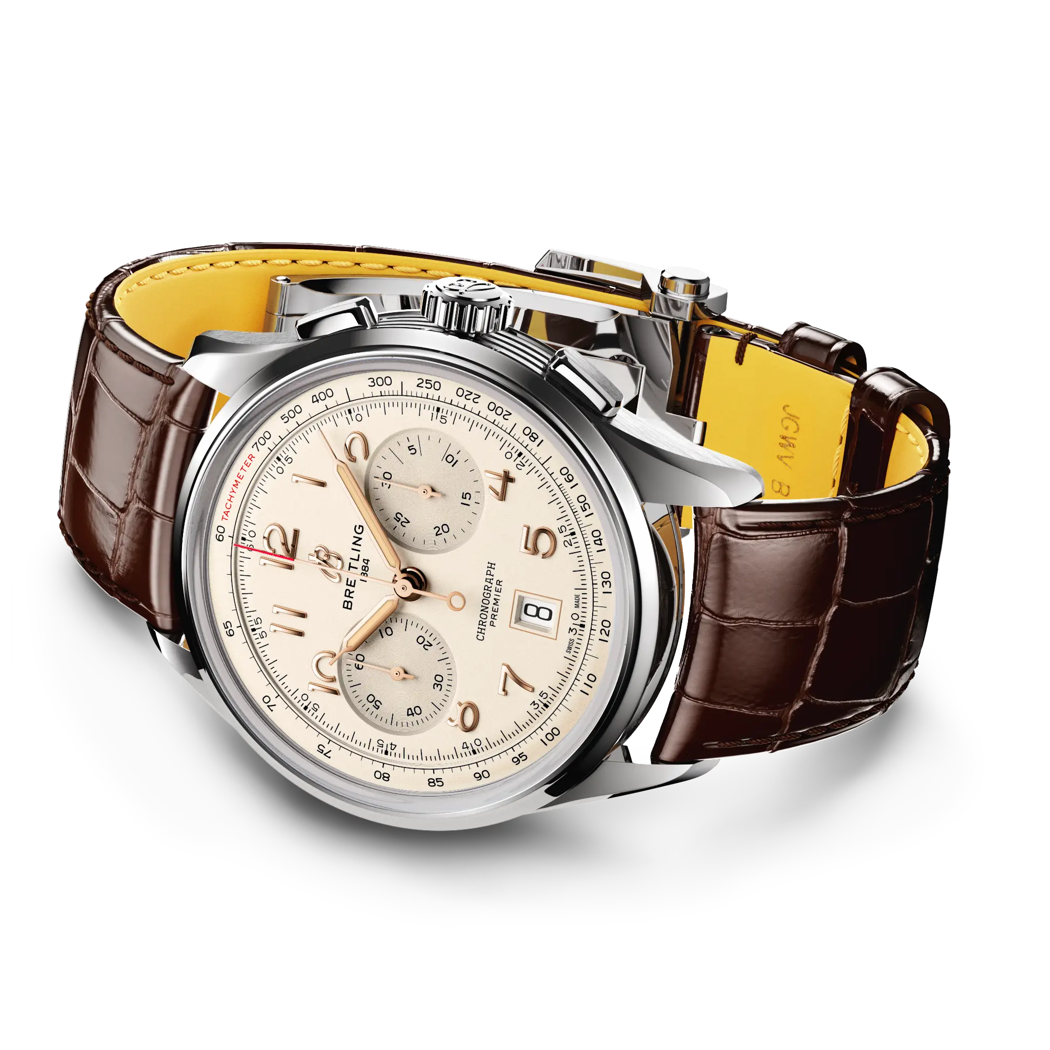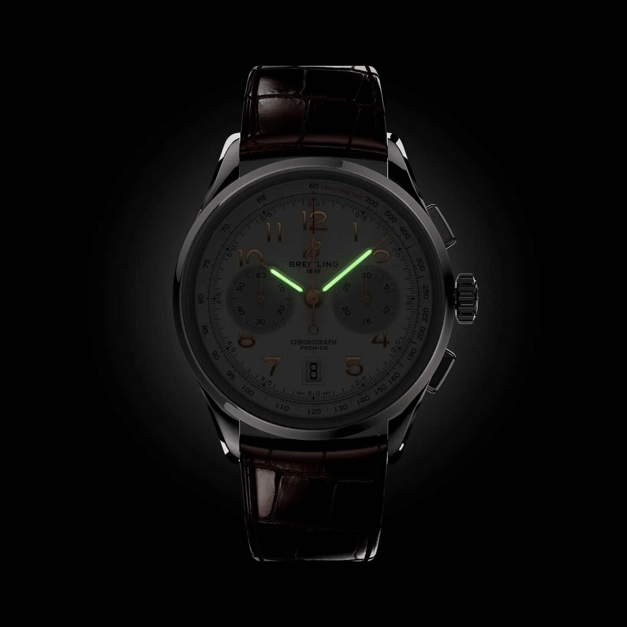 Na początku lat czterdziestych Willy Breitling marzył już o czasie po wojnie, kiedy użyteczność ustąpi miejsca nieokiełznanemu optymizmowi. Zaczął projektować chronograf, który byłby funkcjonalny, ale także niezaprzeczalnie elegancki i nieskończenie wygodny w noszeniu – jego zdaniem „niewątpliwy znak nienagannego smaku”. Nazwał tę nową linię Premier. Aby stworzyć nowoczesny model Premier, Breitling zachował charakterystyczne detale w stylu vintage. Czasomierz posiada charakterystyczne opływowe, przyciski obsługujące chronograf. Model Premier B01 Chronograph 42 jest dostępny z szeroką gamą kolorów tarczy i materiałów, z których wykonana jest koperta. Do wyboru jest klasyczny pasek ze skóry aligatora lub elegancka metalowa bransoleta z 7 rzędami. Dzisiejszy Premier również spełnia bezkompromisowe standardy techniczne Willy’ego Breitlinga dzięki wyjątkowemu samozwijającemu się mechanizmowi — certyfikowanemu przez COSC kaliberowi produkcji Breitling 01 — zaprojektowanemu z myślą o maksymalnej precyzji, niezawodności i funkcjonalności. Premier B01 Chronograph 42mm objęty jest pięcioletnią, międzynarodową gwarancją producenta.
