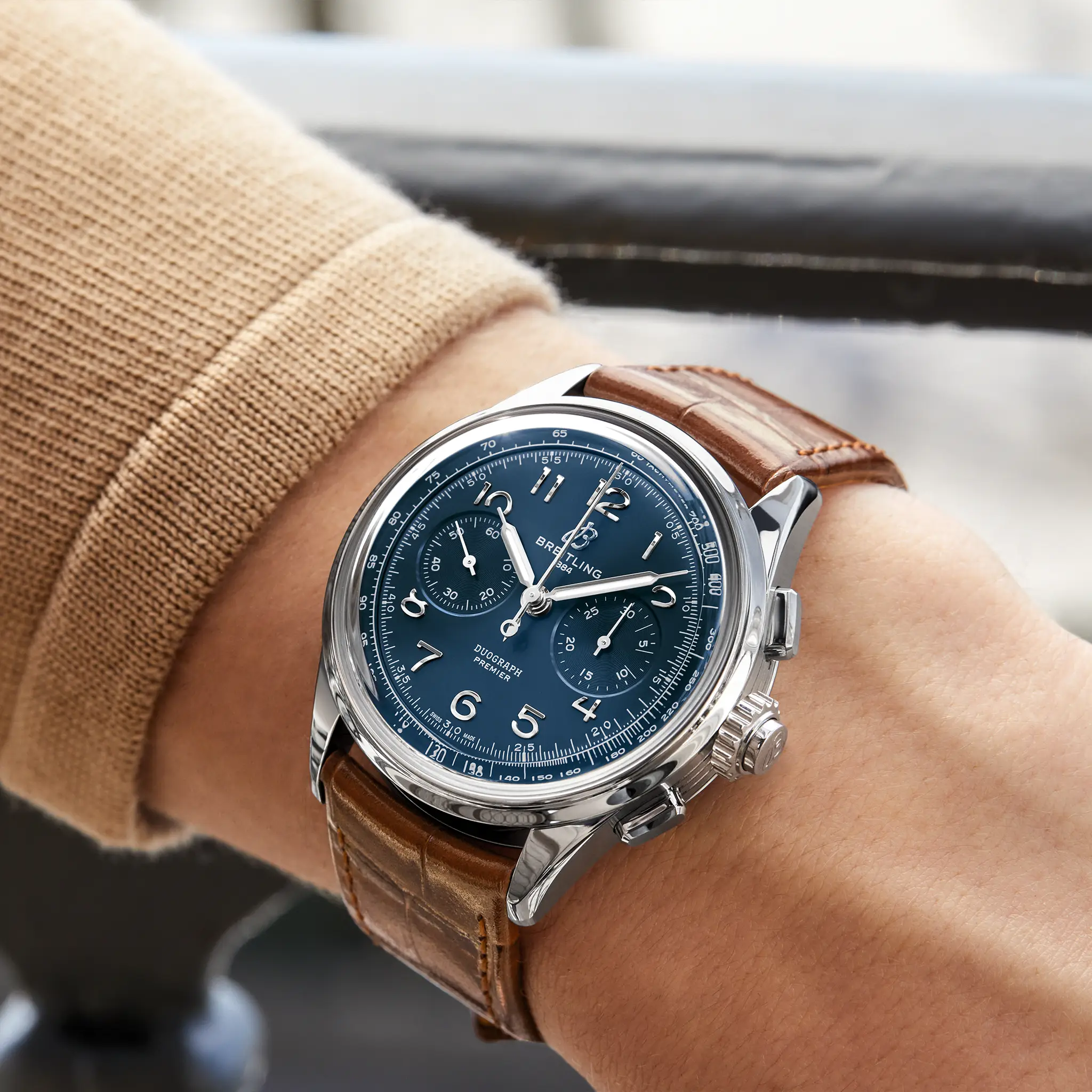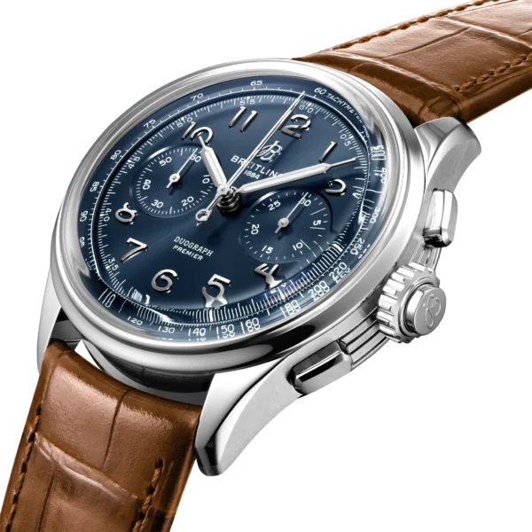 Składając hołd trzem pokoleniom wynalazców – Léonowi, Gastonowi i Willy’emu Breitlingowi – Premier Duograph ukazuje doświadczenie zegarmistrzowskie Breitlinga. Najnowsza generacja chronografów Premier przywraca do życia swoją ponadczasową elegancję i prezentuje najwyższy poziom zegarmistrzostwa Breitling dzięki gamie kultowych komplikacji Premier: chronografowi, duografowi i modelowi datora. Wyposażone w prostokątne przyciski chronografu, i cyfry arabskie, odnowione chronografy Premier mają szereg eleganckich detali, takich jak rowki na bokach koperty, przeszklone, szafirowe dekielki i wskazówki inspirowane stylem vintage. Duograph jest dostępny w dwóch wersjach: ze stali nierdzewnej z niebieską tarczą i złotobrązowym paskiem ze skóry aligatora lub z 18-karatowego czerwonego złota z czarną tarczą i czarnym paskiem ze skóry aligatora. „Duograph” był terminem używanym przez Breitlinga w latach czterdziestych XX wieku i odnosi się do „chronografu rattrapante”. Rattrapante (od francuskiego „rattraper” – to dogonić) jest jedną z najbardziej skomplikowanych ze wszystkich komplikacji zegarków. Komplikacja, jest porównywalna z tourbillonem i repetytorem minutowym. Jego funkcją jest pomiar dwóch czasów, które upłynęły na raz (czas pośredni i międzyczas), który pokazuje dwiema wskazówkami na centralnym chronografie. Duograph jest zasilany ręcznie nakręcanym, certyfikowanym mechanizmem Breitling Manufacture Calibre B15, wyposażony w dwie opatentowane innowacje: jedną upraszczającą mechanizm, a drugą poprawiającą dokładność. Czasomierz objęty jest pięcioletnią, międzynarodową gwarancją producenta.