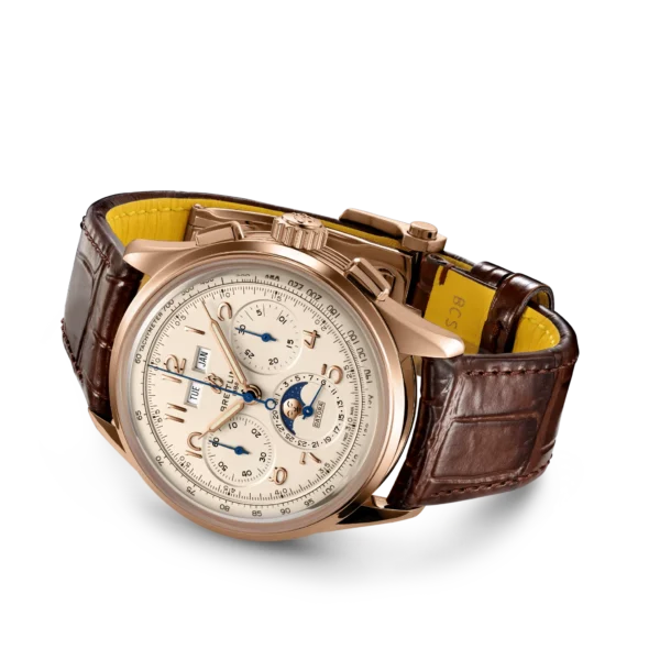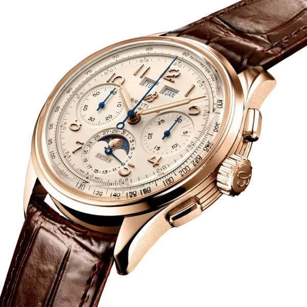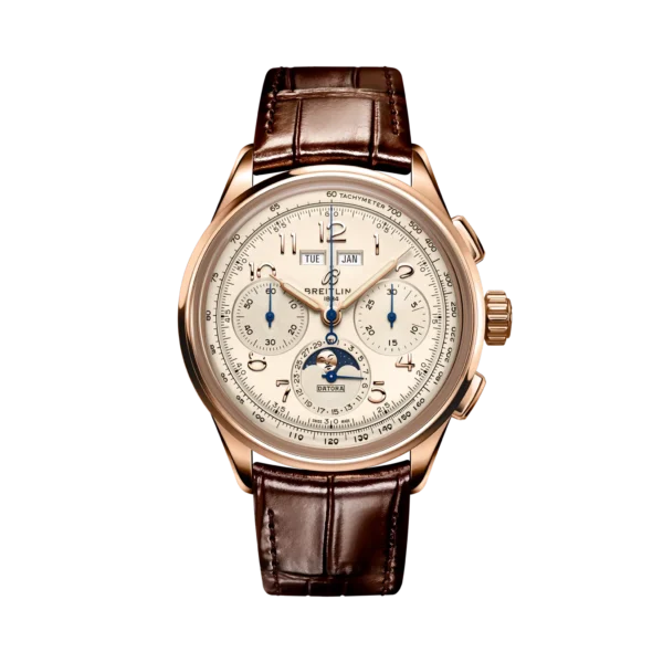 Składając hołd trzem pokoleniom wynalazców – Léonowi, Gastonowi i Willy’emu Breitlingowi – Premier Datora to najbardziej wyrafinowany chronograf Breitling z pełnym kalendarzem i fazami księżyca. Jak powiedział Willy Breitling, Premier to „niewątpliwa pieczęć nienagannego smaku”. Najnowsza generacja chronografów Premier przywraca do życia swoją ponadczasową elegancję i prezentuje najwyższy poziom zegarmistrzostwa Breitling dzięki gamie kultowych komplikacji chronografowi, duografowi i datorowi. Wyposażony w prostokątne przyciski chronografu i cyfry arabskie, odnowiony zegarek Premier Datora ma szereg eleganckich detali, takich jak rowki na bokach koperty, otwarte szafirowe dekielki i wskazówki inspirowane stylem vintage. Datora jest dostępny w dwóch wersjach: ze stali nierdzewnej z miedzianą tarczą i brązowym paskiem ze skóry aligatora lub z 18-karatowego czerwonego złota ze srebrną tarczą i brązowym paskiem ze skóry aligatora. „Datora” to termin używany przez Breitlinga w latach czterdziestych XX wieku i odnosi się do kompletnego chronografu z kalendarzem wyświetlającego dzień, datę, miesiąc i fazy księżyca. Datora jest napędzany certyfikowanym przez COSC mechanizmem manufakturowym B25. Breitling Premier B25 Datora 42 objęty jest pięcioletnią, międzynarodową gwarancją producenta.