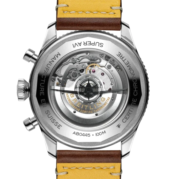 Breitling Super Avi B04 Chronograph GMT 46 Curtiss Warhawk to przepiękny, czasomierz bedąc swoistym hołdem dla legendarnego samolotu z II Wojny Światowej Curtiss Warhawk. Breitling przy projektowaniu tego modelu postanowił sięgnąć do bogatej historii marki, która od dawna była związana z lotnictwem. W latach 30-tych XX wieku Breitling Huit zaprojektował precyzyjne zegary wykorzystane w kopcicie samolotu. Dwie dekady później Breitling zaproponował zegarek dla pilotów o ref. 765 AVI. Właśnie ten wyjątkowy czasomierz stał się pierwowzorem dla kolekcji współczenych modeli który mamy zaszczyt zaprezentować naszym klientom. Zegarek jest bardzo czytelny, jego rozmiar wynosi 46 mm, znacznych rozmiarów koronka usytuowana jest na godzinie trzeciej. Czasomierz naręczny posiada drugą strefę czasową, manufakturowy mechanizm Calibre B04, certyfikowany przez COSC. Breitling Super Avi B04 Chronograph GMT 46 Curtiss Warhawk objęty jest pięcioletnią gwarancją producenta.