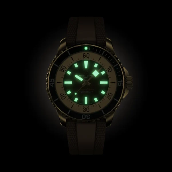 Linia zegarków Breitling Superocean została zapoczątkowana w latach 60-tych, kiedy to nurkowanie cieszyło się ogromną popularnością. Breitling zaprojektował, wykonał taki model zegarka o nazwie „Slow Motion” wychodząc naprzeciw oczekiwaniom i potrzebom osób uprawiających sporty wodne oraz nurkowanie. Tegoroczny model Slow Motion zachował wiele ze swojego pierwowzoru, łącząc w sobie tradycję ze zdobyczami techniki stosowanymi we współczesnych czasomierzach. Wszystkie modele z Linii Breitling Superocean mają wodoszczelność 300 m, ceramiczne pierścienie, niezwykle czytelne tarcze dostępne w różnych kolorach, szerokie indeksy, wskazówki pokryte Super-LumiNova® dla zapewnienia czytelności pod wodą. Możemy także wybrać model, którego koperta jest wykonany z brązu. Brąz to wyjątkowy materiał, który z czasem pokrywa się patyną stając się niepowtarzalnym. Zegarki dostępne są na stalowej bransolecie oraz gumowym pasku. Każdy model Superocean posiada składane zapięcie z mikroregulacją do 15 mm. To niezwykle przydatna i praktyczna cecha w tego typu czasomierzach, kiedy musimy założyć go na uniform do nurkowania. Wewnątrz koperty pracuje mechanizm calibre B17 z naciągiem automatycznym posiadającym certyfikat chronometru nadawany przez COSC. Aby mechanizm go otrzymał musi spełniać odpowiednie normy dokładności chodu. Linia zegarków Breitling Superocean objęta jest dwuletnią, międzynarodową gwarancją producenta.