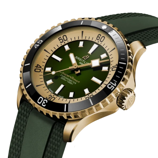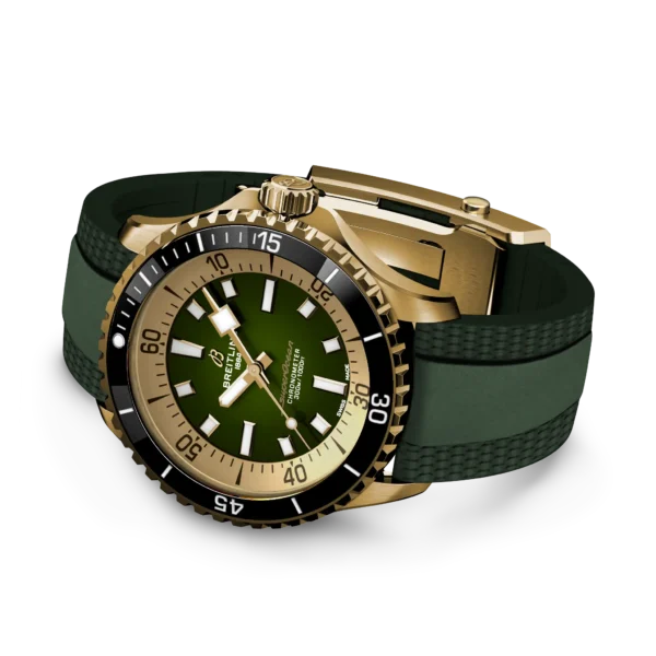 Linia zegarków Breitling Superocean została zapoczątkowana w latach 60-tych, kiedy to nurkowanie cieszyło się ogromną popularnością. Breitling zaprojektował, wykonał taki model zegarka o nazwie „Slow Motion” wychodząc naprzeciw oczekiwaniom i potrzebom osób uprawiających sporty wodne oraz nurkowanie. Tegoroczny model Slow Motion zachował wiele ze swojego pierwowzoru, łącząc w sobie tradycję ze zdobyczami techniki stosowanymi we współczesnych czasomierzach. Wszystkie modele z Linii Breitling Superocean mają wodoszczelność 300 m, ceramiczne pierścienie, niezwykle czytelne tarcze dostępne w różnych kolorach, szerokie indeksy, wskazówki pokryte Super-LumiNova® dla zapewnienia czytelności pod wodą. Możemy także wybrać model, którego koperta jest wykonany z brązu. Brąz to wyjątkowy materiał, który z czasem pokrywa się patyną stając się niepowtarzalnym. Zegarki dostępne są na stalowej bransolecie oraz gumowym pasku. Każdy model Superocean posiada składane zapięcie z mikroregulacją do 15 mm. To niezwykle przydatna i praktyczna cecha w tego typu czasomierzach, kiedy musimy założyć go na uniform do nurkowania. Wewnątrz koperty pracuje mechanizm calibre B17 z naciągiem automatycznym posiadającym certyfikat chronometru nadawany przez COSC. Aby mechanizm go otrzymał musi spełniać odpowiednie normy dokładności chodu. Linia zegarków Breitling Superocean objęta jest dwuletnią, międzynarodową gwarancją producenta.