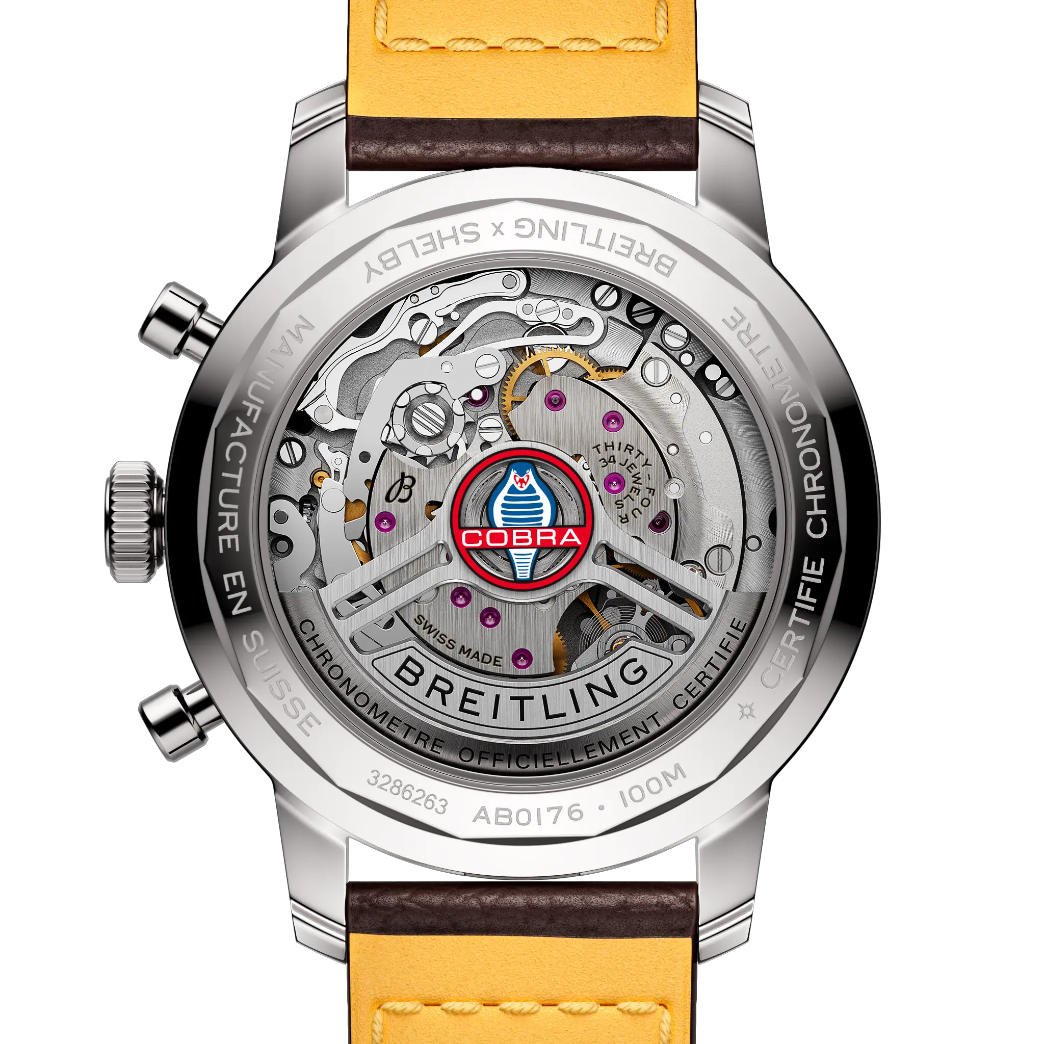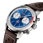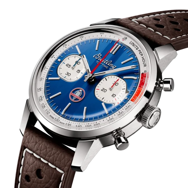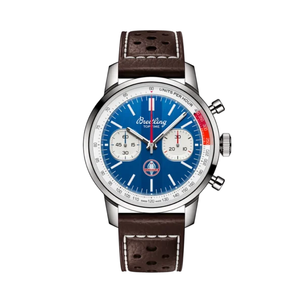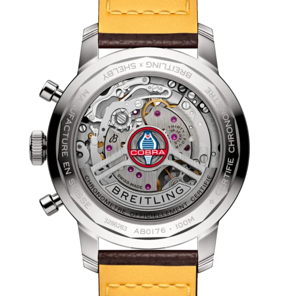 Lata 60-te, to dekada eksperymentów, zabawy, wolności i energii. Niezależnie od tego, czy jeździsz na motocyklu, czy przyspieszasz sportowym samochodem, życie na pełnych obrotach było na porządku dziennym. Willy Breitling wyczuł tę zmianę tempa i postanowił zaprojektować niekonwencjonalny chronograf, który uchwyciłby werwę epoki. Nazwał to Top Time. Ta porywająca tradycja jest kontynuowana do dziś, a Breitling współpracuje z niektórymi z najfajniejszych marek w dziedzinie kół, aby stworzyć swoje projekty Top Time. Na początku lat 60. zwycięzca Le Mans, Carrol Shelby, wyobraził sobie samochód, który łączyłby małe, lekkie podwozie w stylu brytyjskim z mocnym, niezawodnym amerykańskim silnikiem typu big-block. Kiedy została wprowadzona na rynek w 1962 roku, Cobra odniosła natychmiastowy sukces, zarówno wśród fanów samochodów sportowych, jak i na torach wyścigowych. Do dziś pozostaje niesamowicie szybki i ceniony przez kolekcjonerów. Top Time B01 Shelby Cobra ma kolory i emblemat swojego odpowiednika z klasycznego samochodu, a także perforowany skórzany pasek wyścigowy, skalę tachymetru do pomiaru prędkości i kontrastujące „squircle” (niezupełnie kwadratowe, nie całkiem okrągłe) subtarcze, które dają wrażenie starych wskaźników deski rozdzielczej. Sercem czasomierza jest manufakturowy mechanizm B01, z rezerwą chodu wynoszącą około 70 godzin. Mechanizm został certyfikowany przez COSC, co oznacza, że spełnia on określone wymogi dokładności chodu. Breitling Top Time B01 Shelby Cobra objęty jest pięcioletnią, międzynarodową gwarancją producenta.