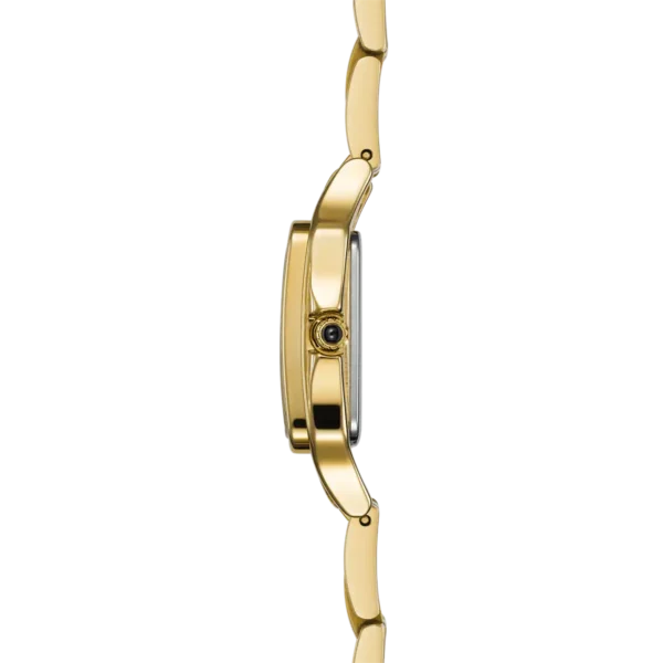 Zegarek LUNA Mini Quartz PVD Yellow Gold został zaprojektowany dla tych, którzy chcą subtelnie podkreślić swój styl, łącząc cenne detale, techniczne mistrzostwo i ciepły blask żółtego złota, który przechwytuje światło, nigdy go nie przytłaczając.