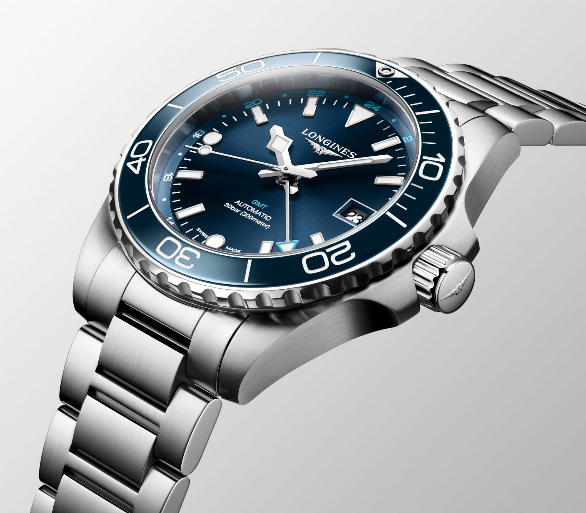 Kolekcja HydroConquest to prawdziwy czempion wśród zegarków sportowych. Nowe modele napędza wyjątkowy mechanizm Longines GMT, który pozwala na pokazywanie godziny w dwóch strefach czasowych. Jest wyposażony w krzemową sprężynę włosową i innowacyjne niemagnetyczne komponenty, co daje mu 10 razy większą odporność na oddziaływanie pól magnetycznych niż wymaga tego norma ISO 764.